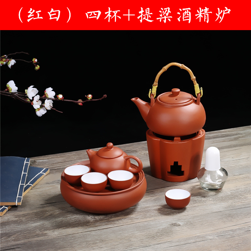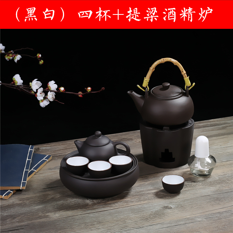 迷你功夫茶具煮茶爐茶具套裝酒精爐煮茶器溫酒器陶瓷酒精燈燒水壺1入
