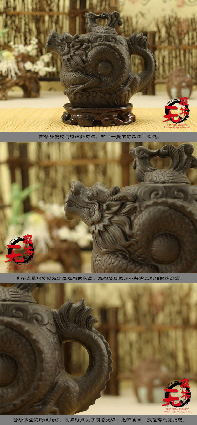 紫砂茶壺龍鳳呈祥朱泥壺潮汕特色茶具大號紫砂壺室內擺設件可1入