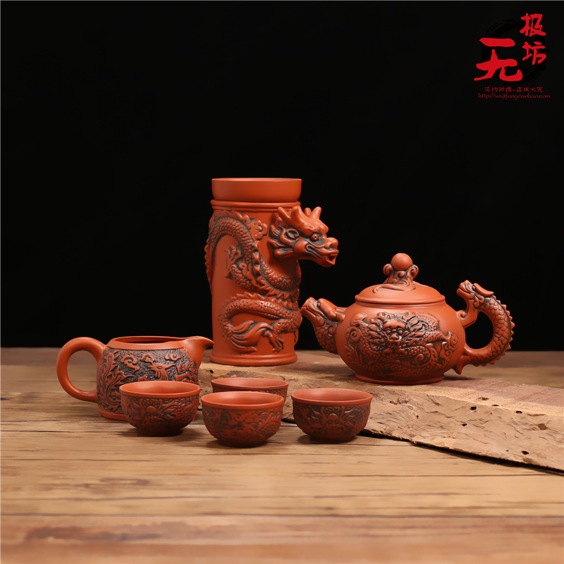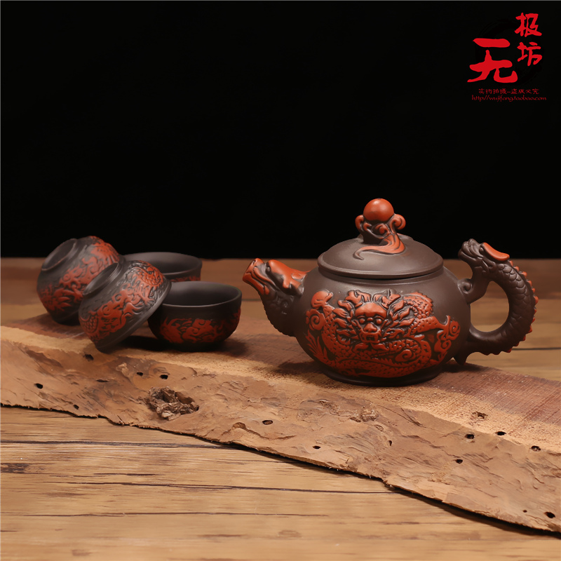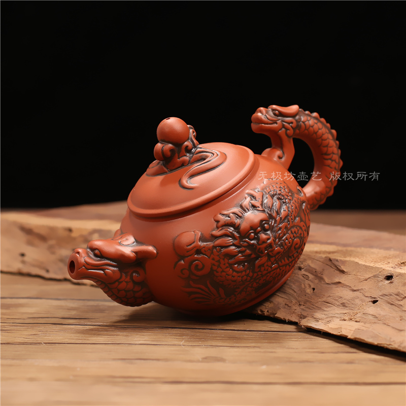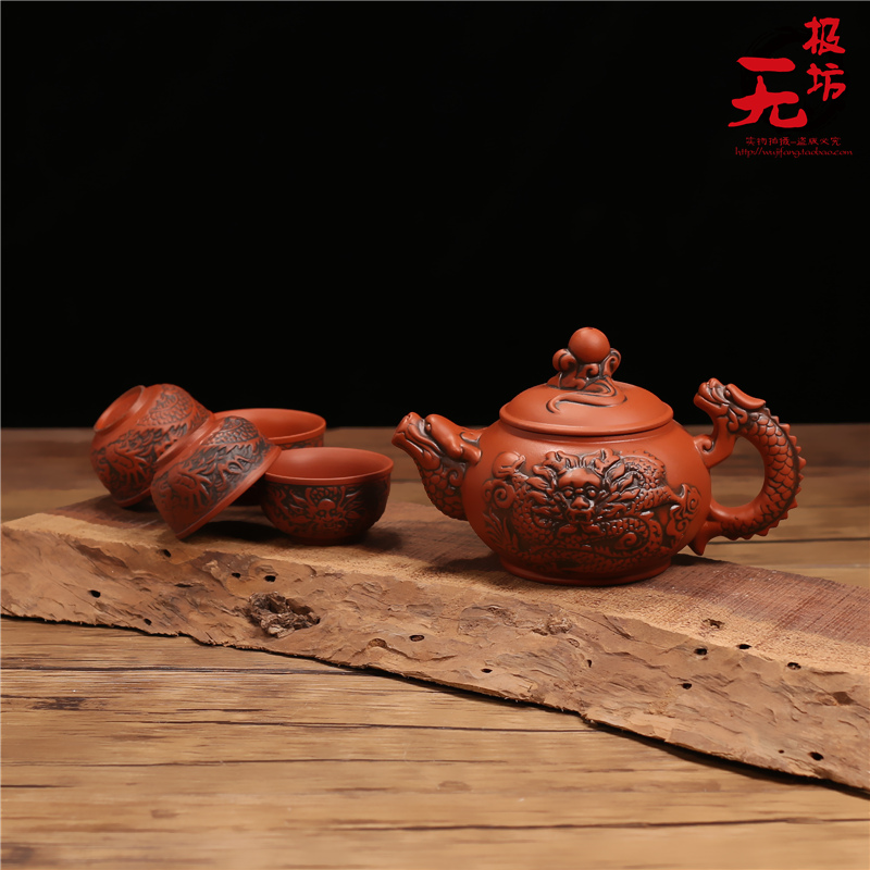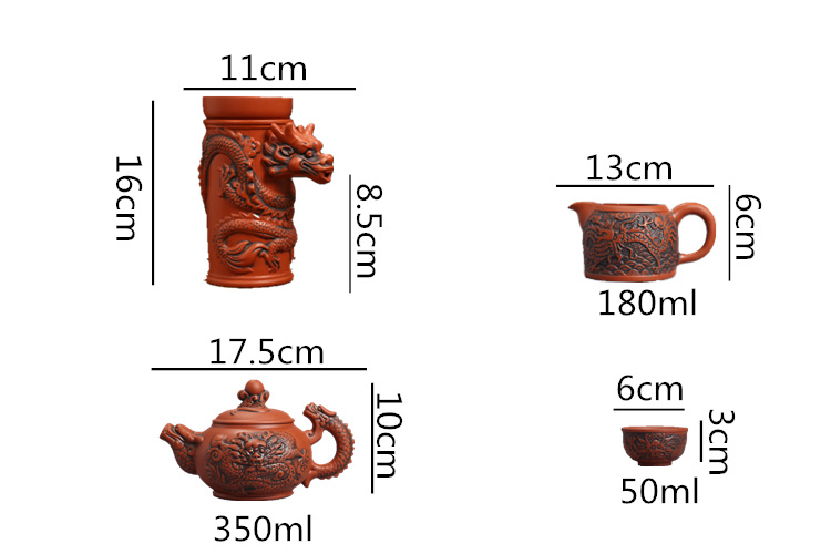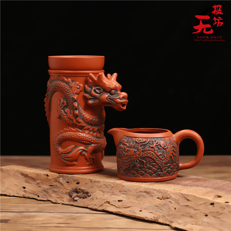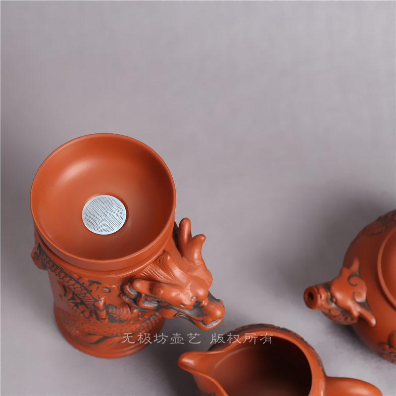 紫砂仿古茶漏架茶濾網功夫龍紋茶壺茶杯整套擺件陶瓷過濾自動茶具1入