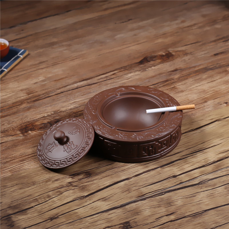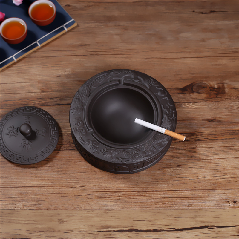 紫砂特色實用帶蓋煙灰缸個性龍鳳中式客廳辦公室大號陶瓷煙缸擺件1入