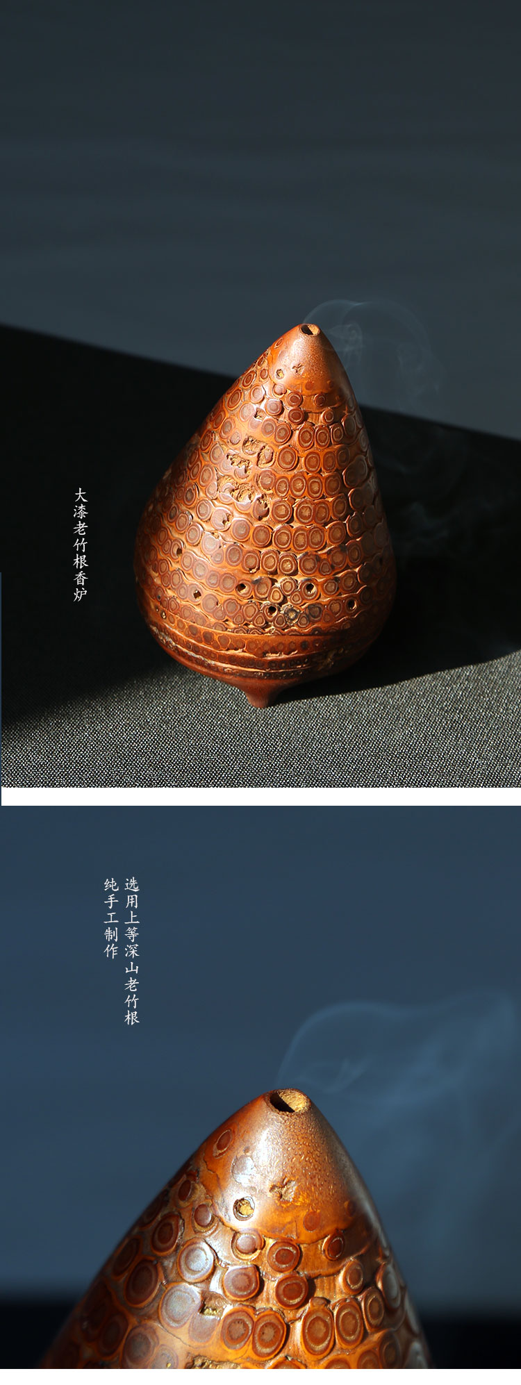 老竹根雕精品大漆香爐 手把件香插藝術品香道 香盤復古熏平底香爐1入