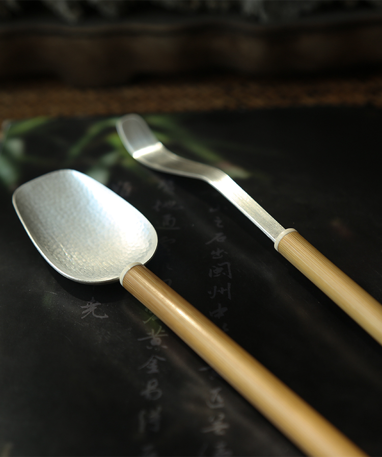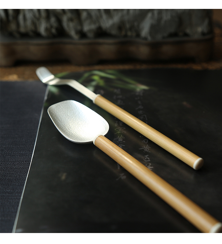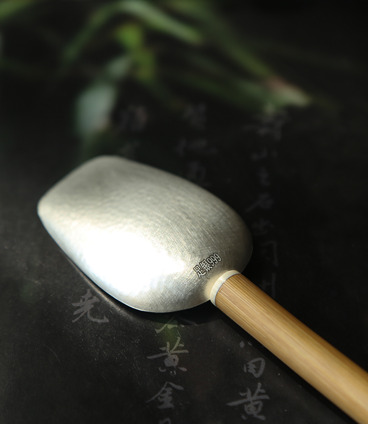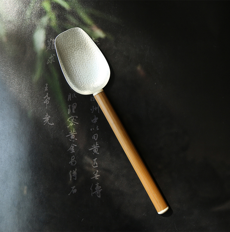 銀茶鏟茶撥老玉竹精工打磨茶道零配竹制六君子鏟茶葉茶勺銀茶具1入