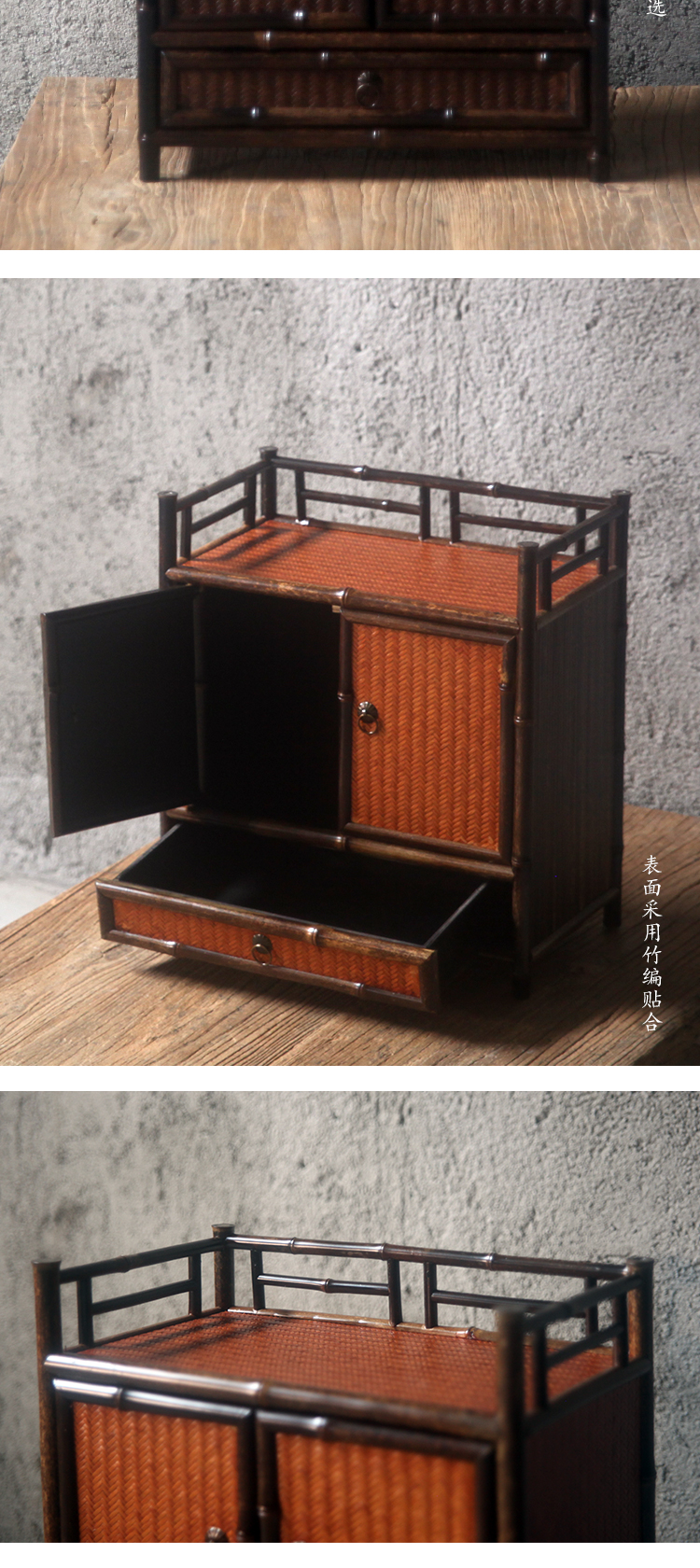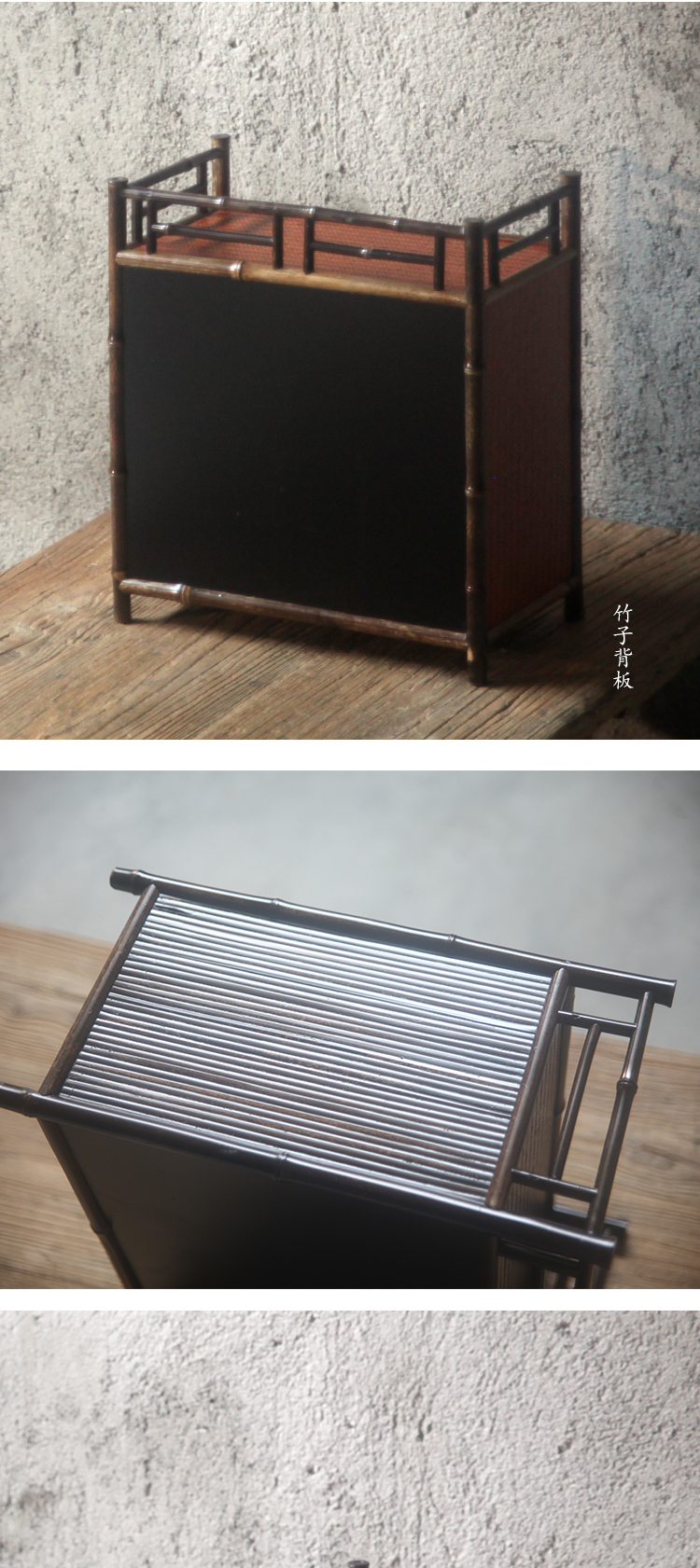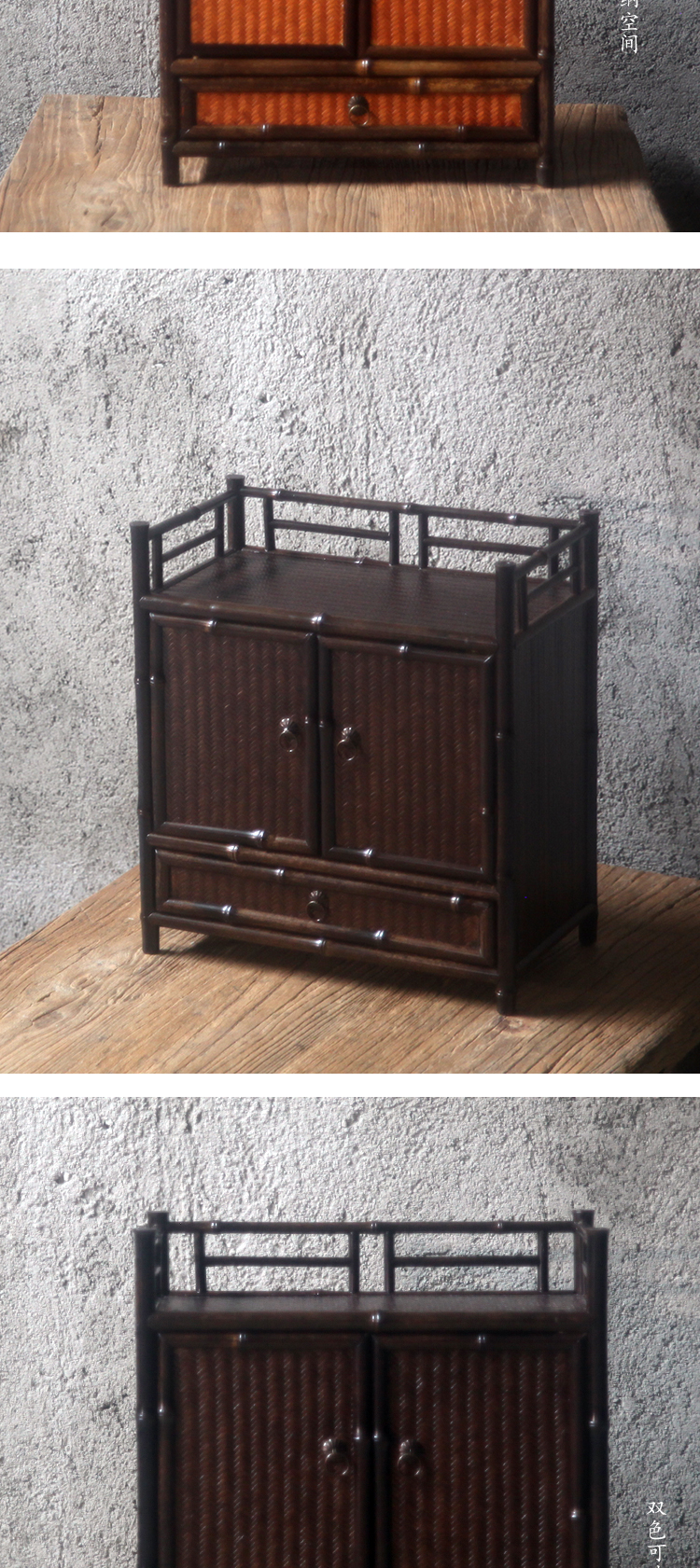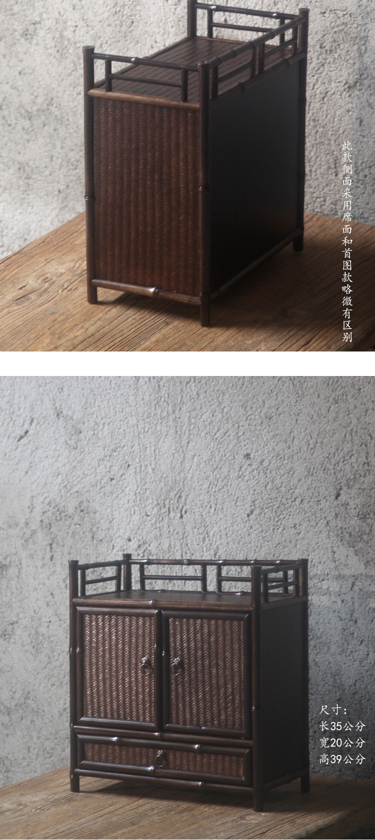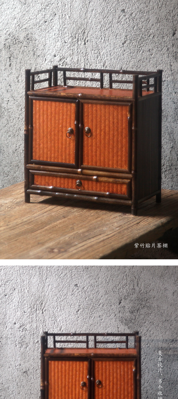 貼片紫竹席面茶棚 雙抽屜日式復古茶具收納架多寶閣博古架茶道配1入