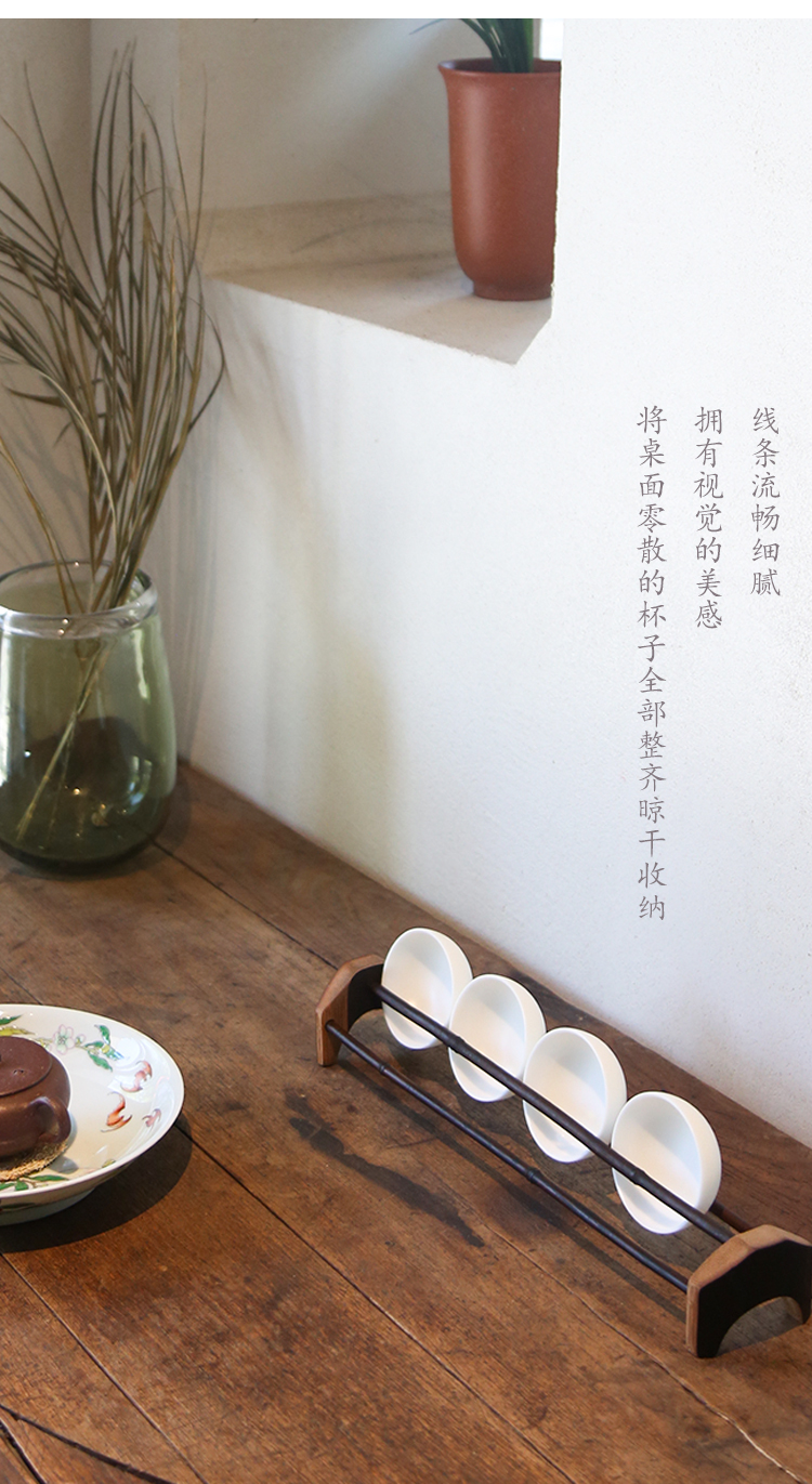 竹制收納品茗杯架晾杯架功夫茶道茶杯架子茶杯擺放架茶盤配件1入