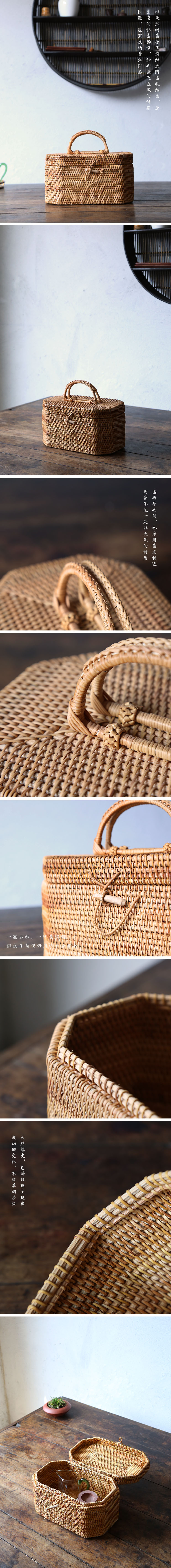 越南進口藤編手提包拎包茶具收納包復古女式包1入