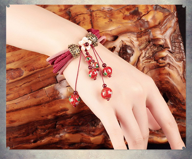 古風手鏈多層景泰藍流蘇吊墜夸張裝飾品復古民族風手飾手工編織女1入
