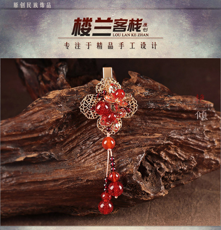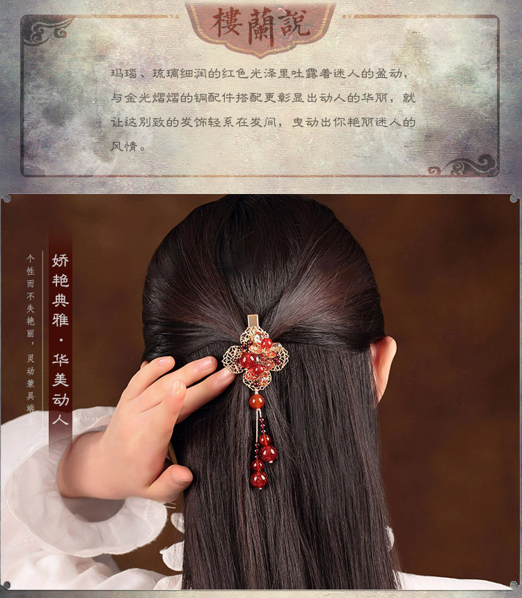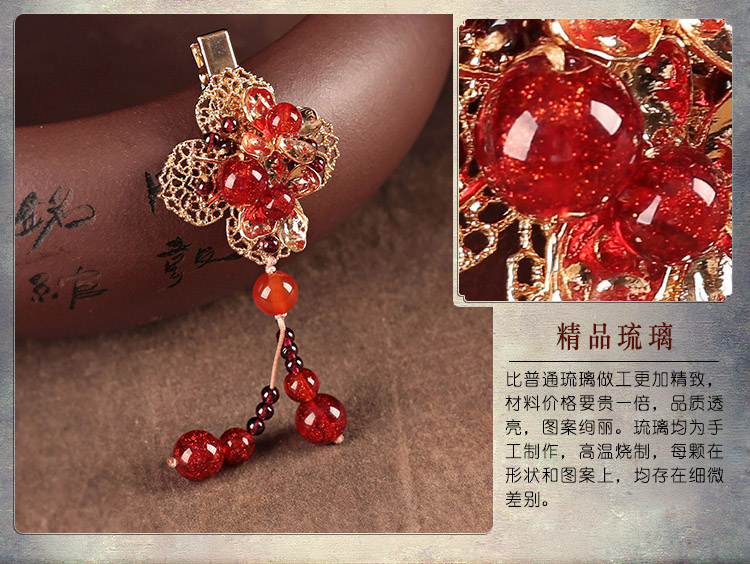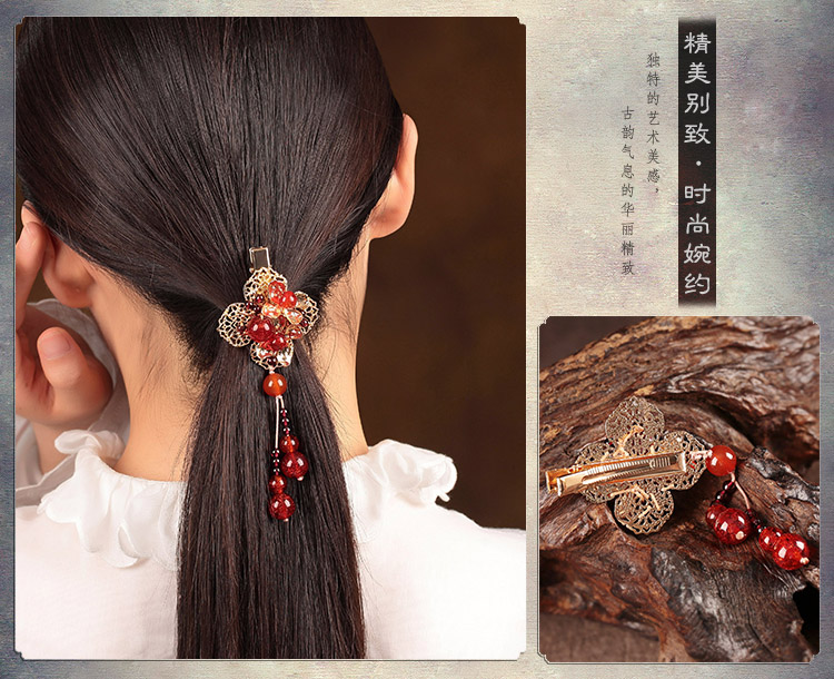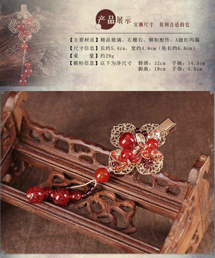 頂夾古風紅色發夾發卡夾子韓國邊夾發飾頭花盤發漢服流蘇頭飾品女1入