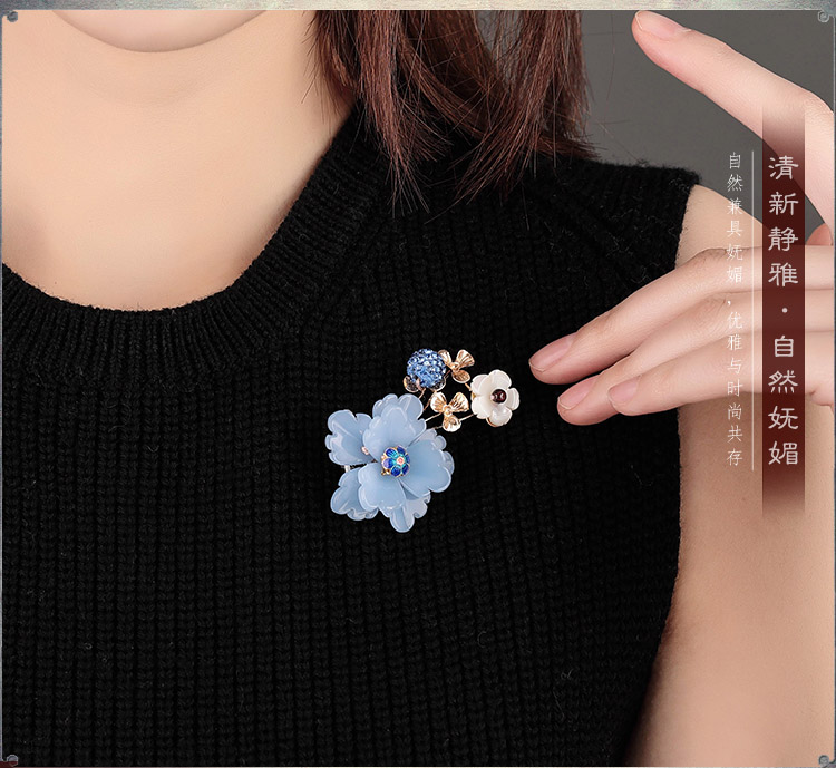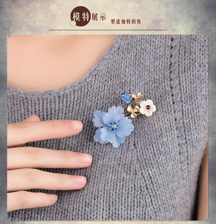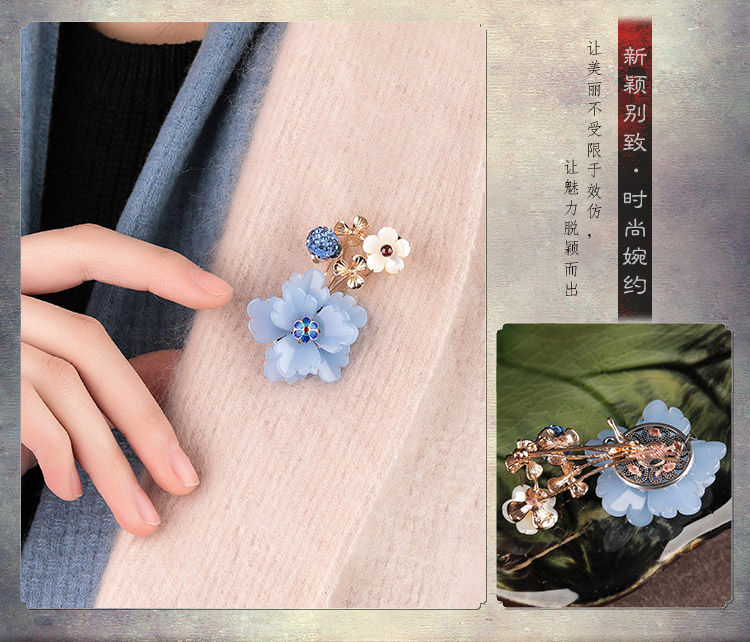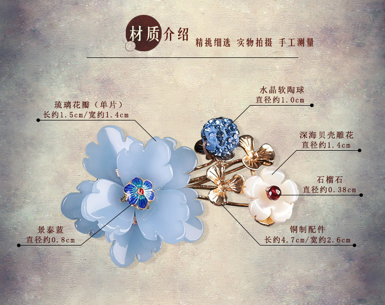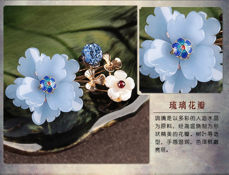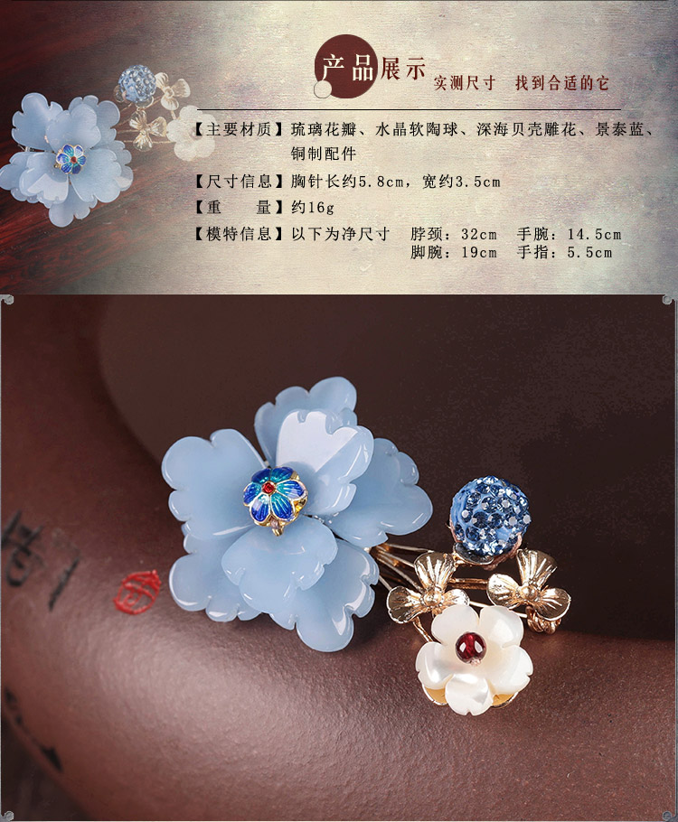 [4]中國風復古琉璃花朵胸針女宮廷毛衣別針胸花外套大氣大衣古風配飾1入