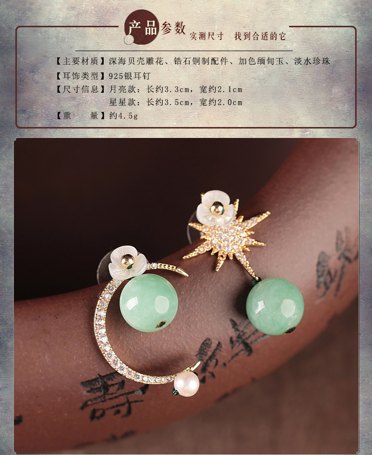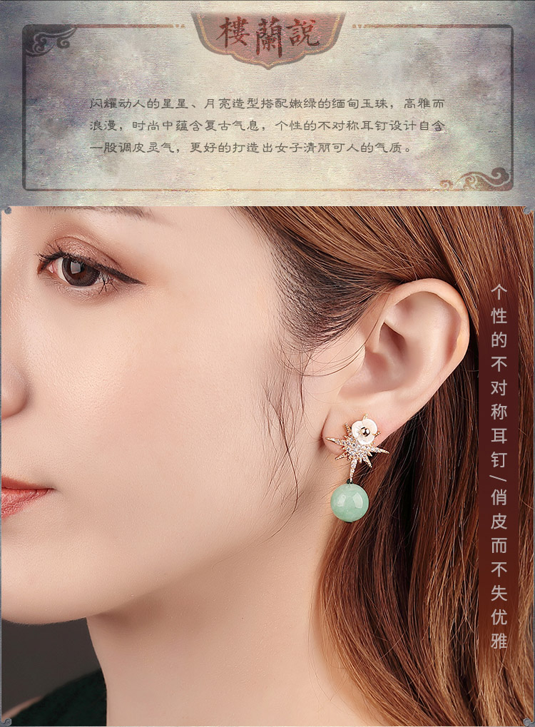 [2]純銀不對稱高級感耳釘女氣質網紅中國風耳墜復古風耳環耳飾品女1入