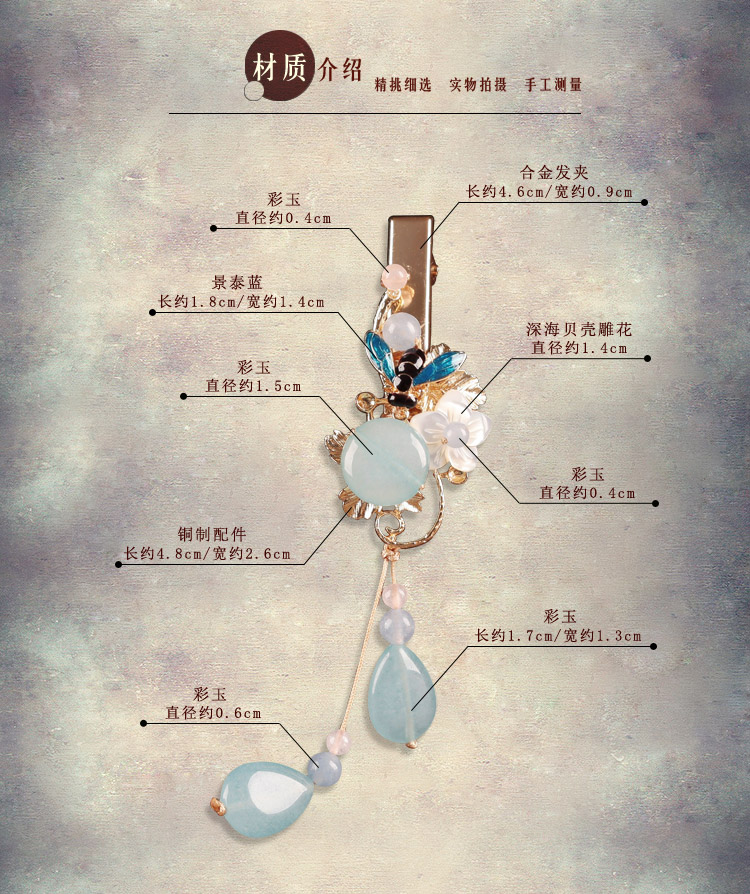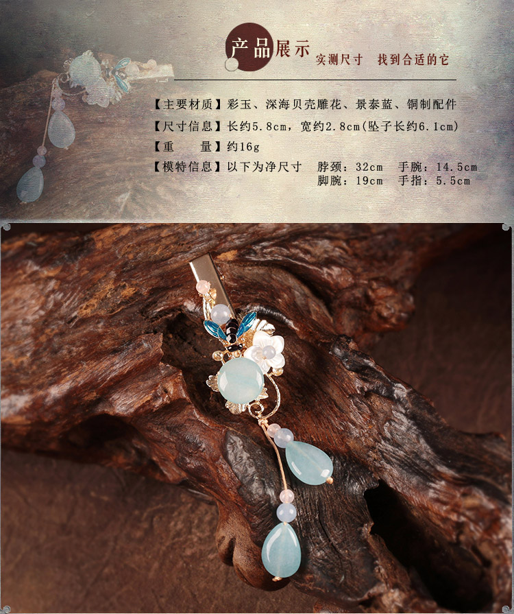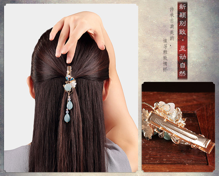 頂夾古風中國風發夾古典邊夾夾子頭飾品發卡步搖流蘇盤發發飾女1入