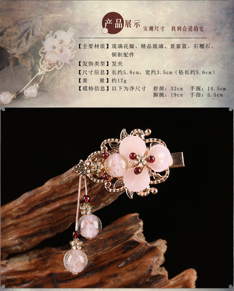 [3]發夾韓國頭飾優雅頂夾古風半扎發發卡夾子復古旗袍步搖流蘇發飾女1入