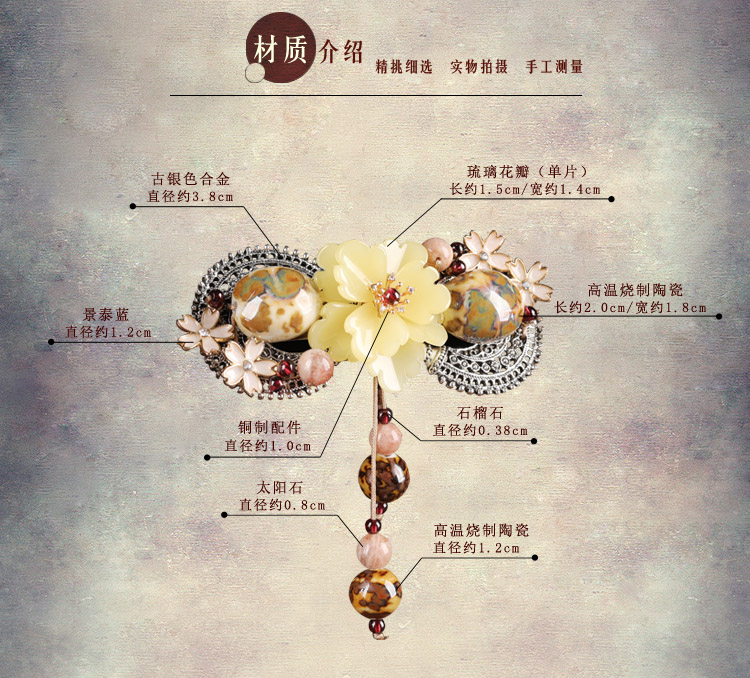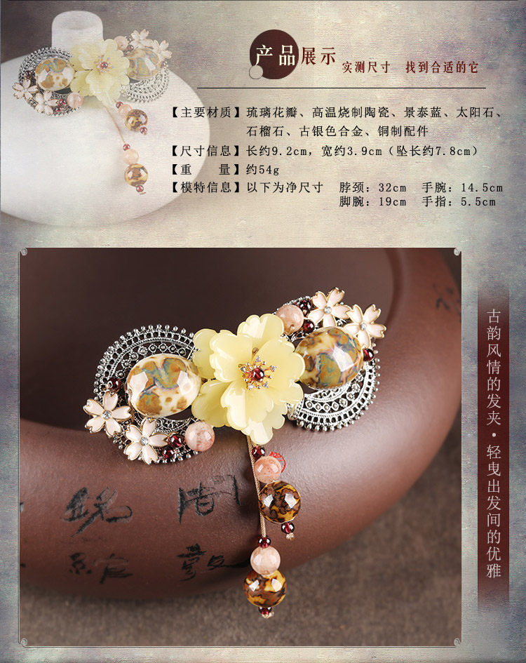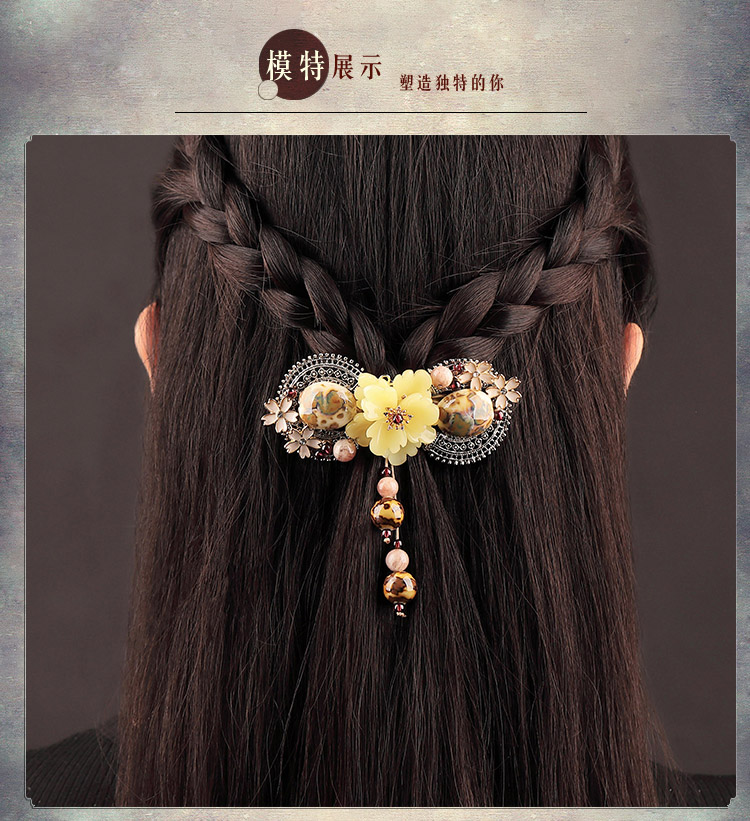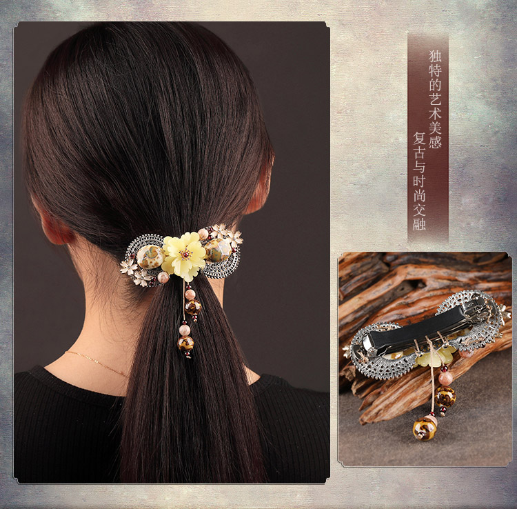 古風發夾頂夾后腦勺彈簧夾發卡卡子一字夾夾子頭花頭飾媽媽發飾女1入