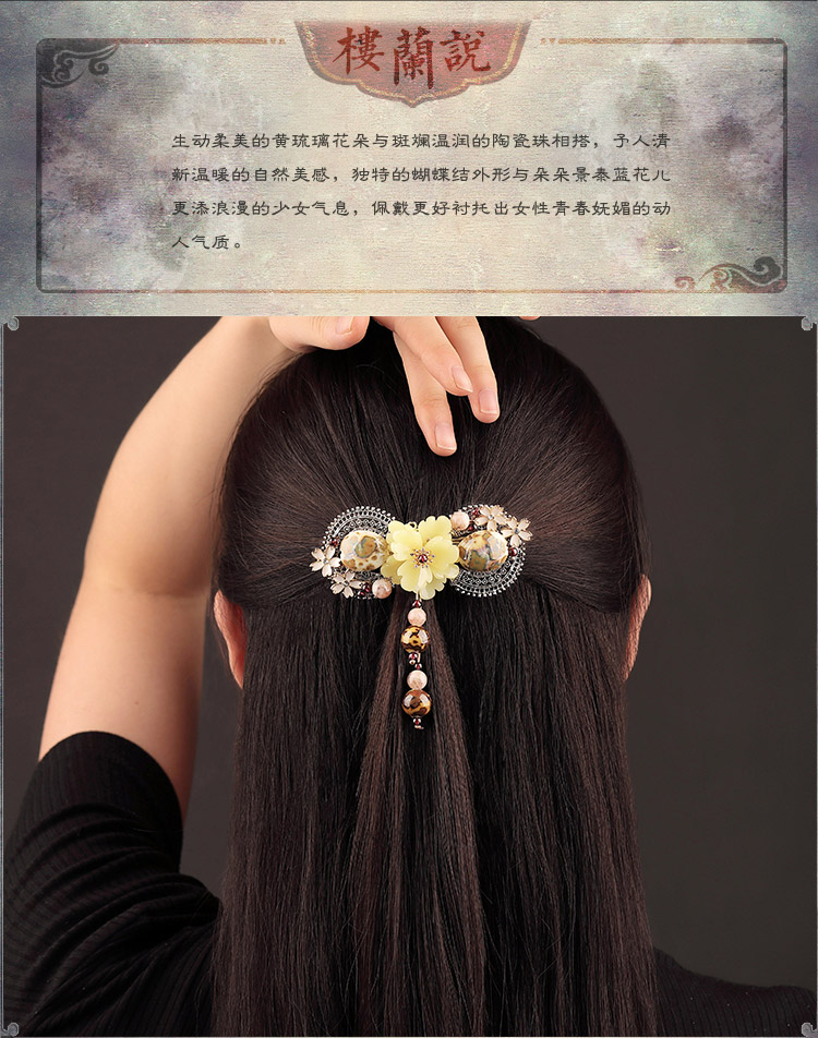 [2]古風發夾頂夾后腦勺彈簧夾發卡卡子一字夾夾子頭花頭飾媽媽發飾女1入