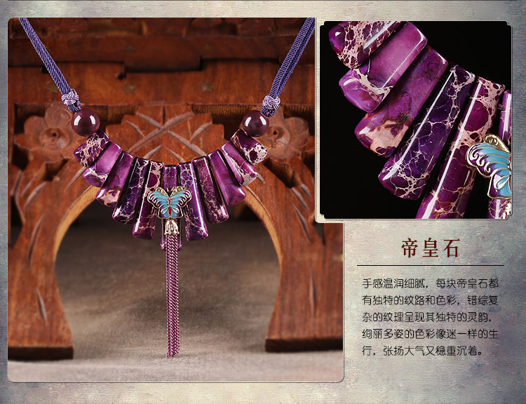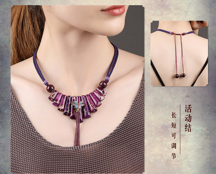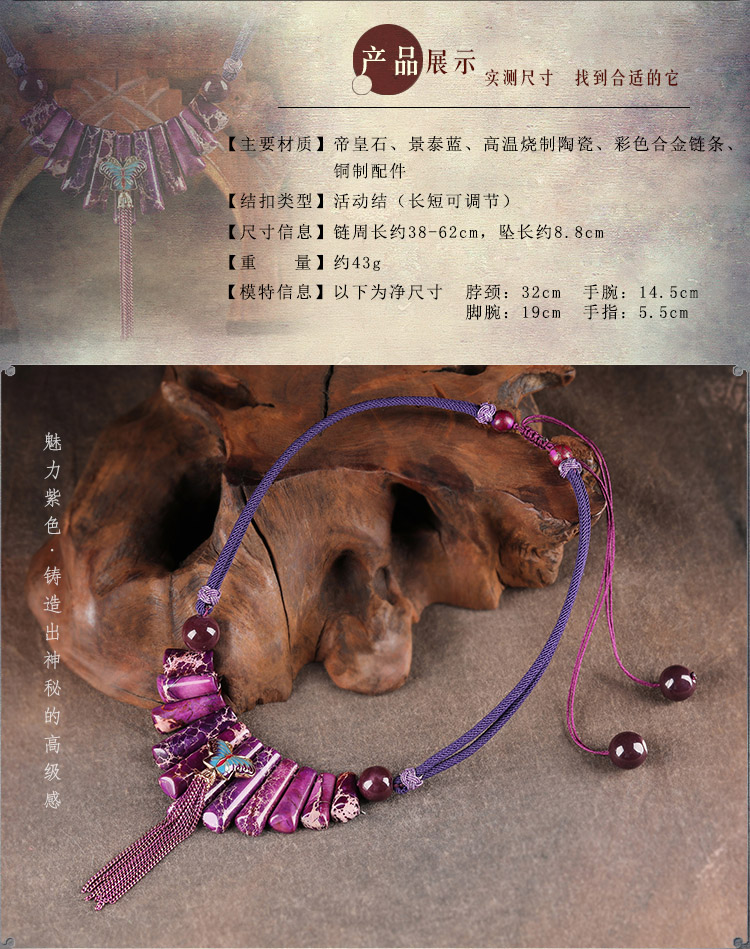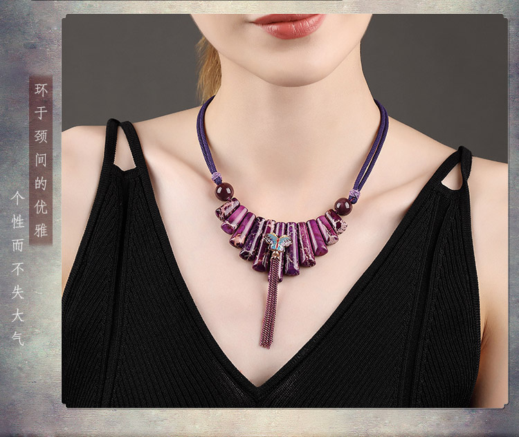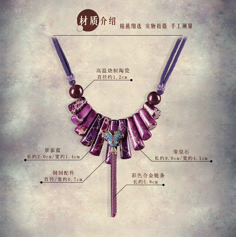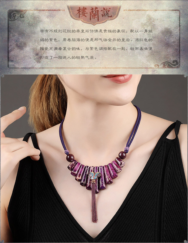 [2]復古宮廷項鏈流蘇夸張裝飾品藍色吊墜掛飾短款民族風鎖骨鏈掛件女1入