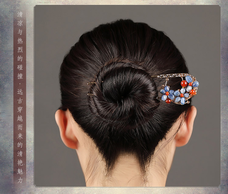 [2]古風發簪步搖盤發百搭超仙頭飾發棧子發飾發詹釵U形中式仿古簪子1入