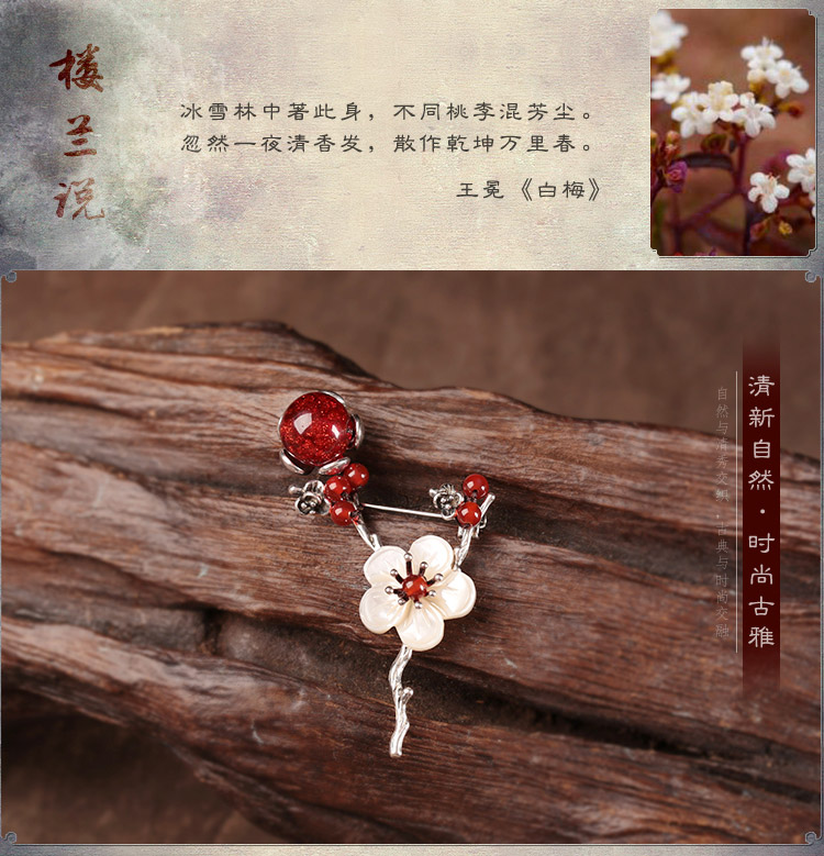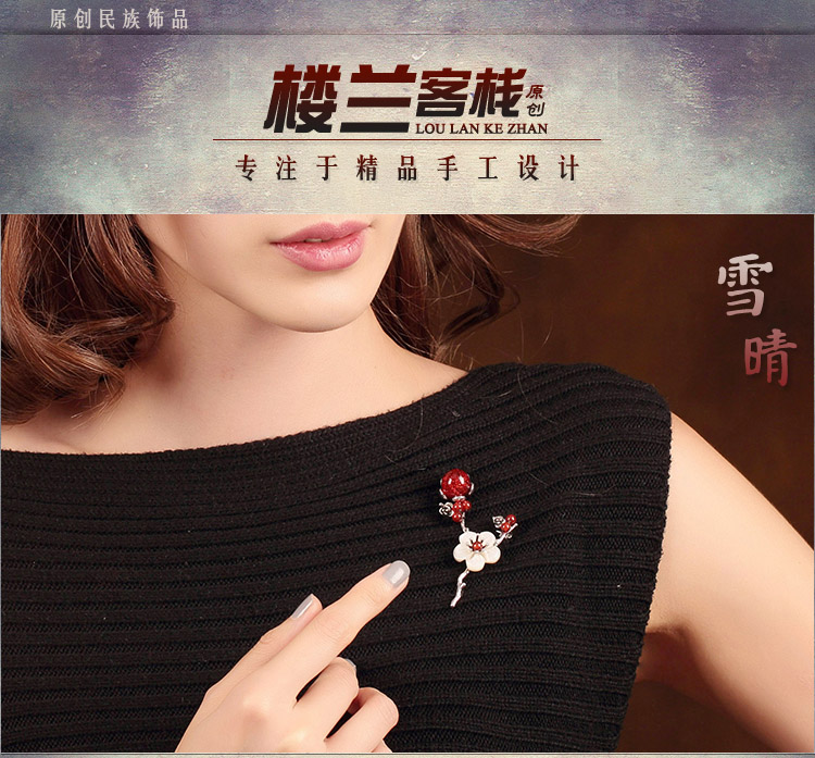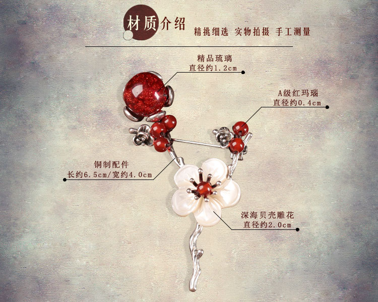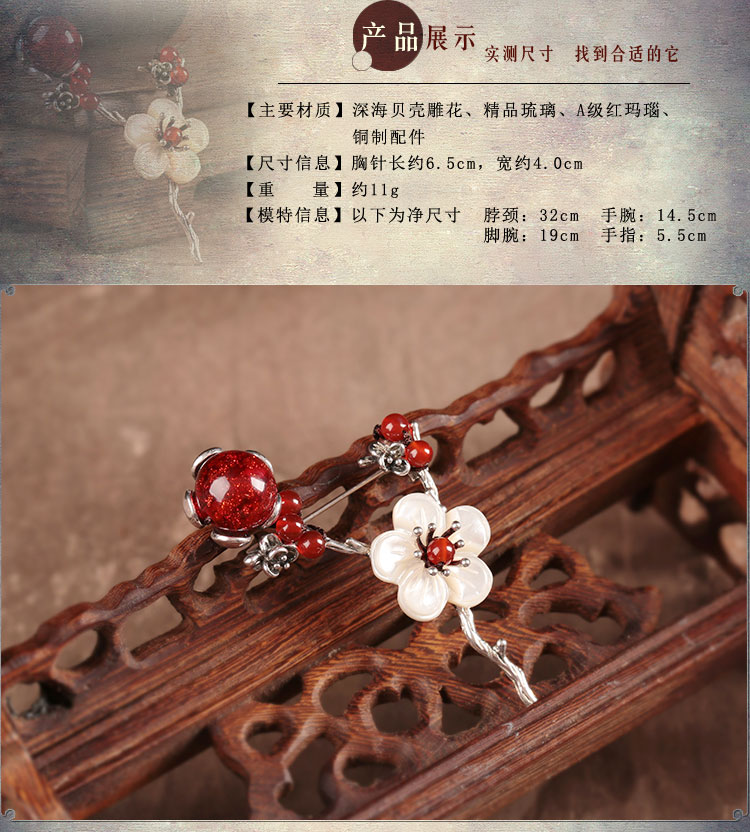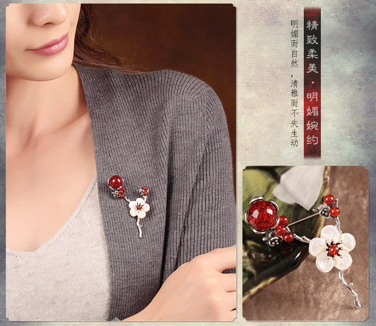 貝殼花朵中國風胸針毛衣別針配飾復古民族風外套氣質胸花女披肩扣1入