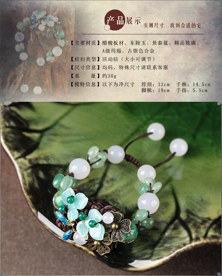 古風中國風手鏈古典手飾手串女森系復古民族風裝飾品1入