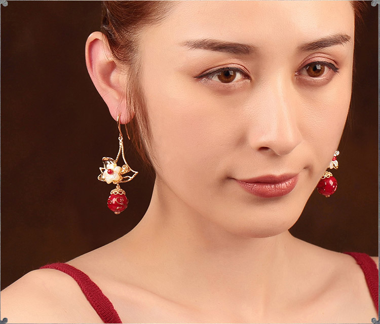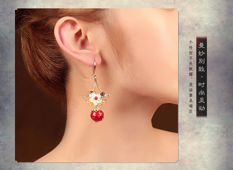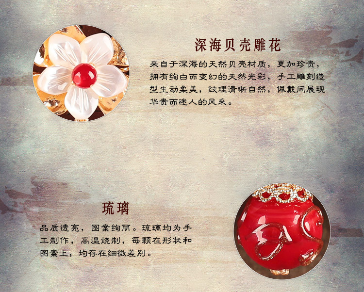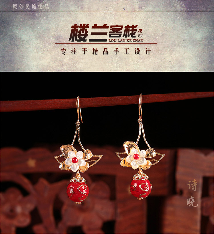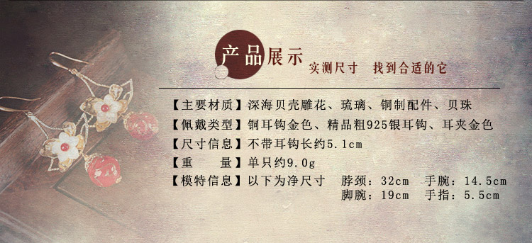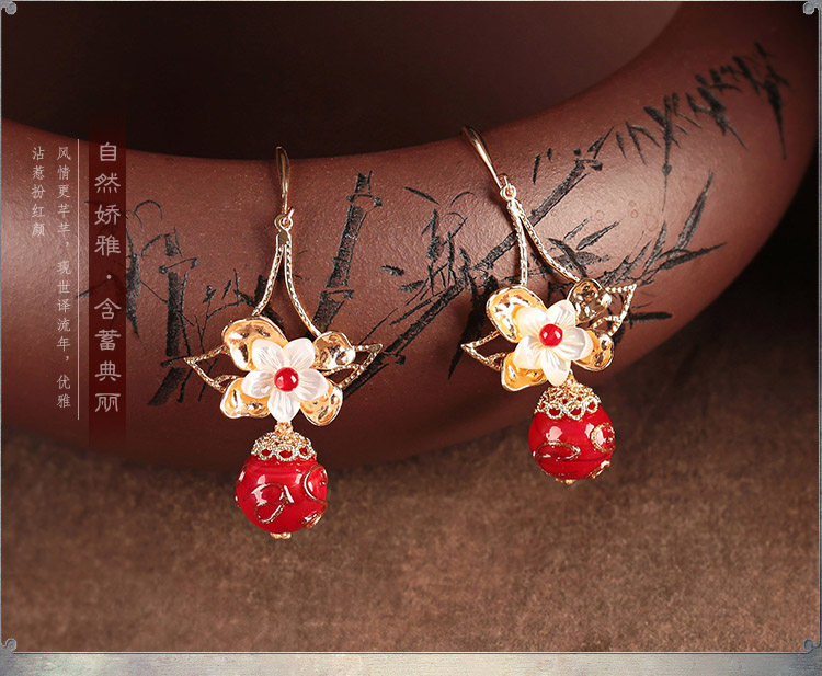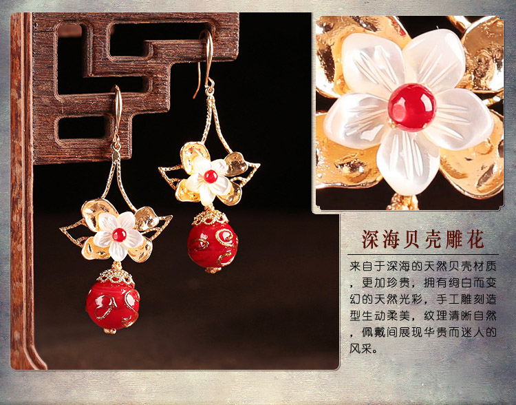 貝殼琉璃吊墜耳環氣質韓國個性百搭古風耳墜復古時尚超仙耳飾品女1入