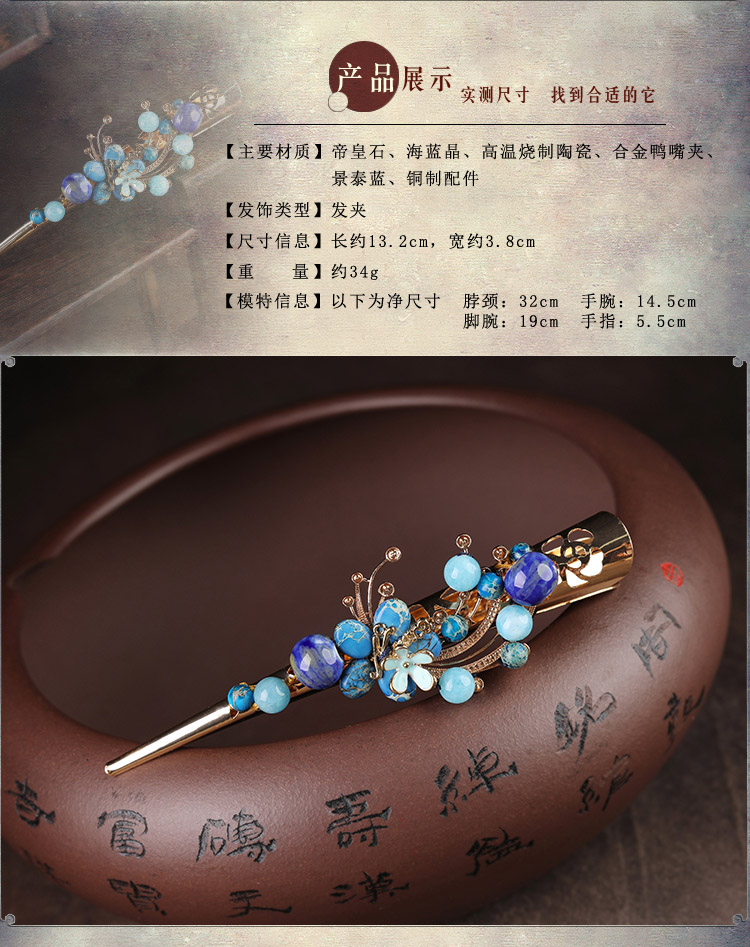 鴨嘴夾大號古風發夾牛角夾一字夾子后腦勺優雅發抓媽媽款盤發頭飾1入