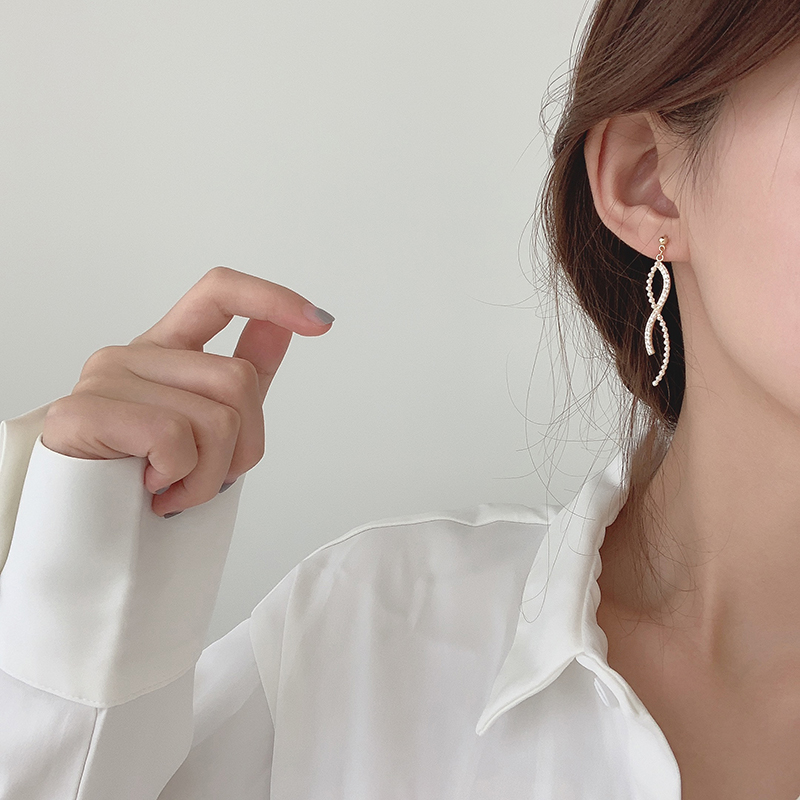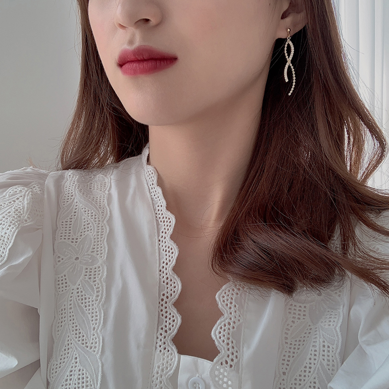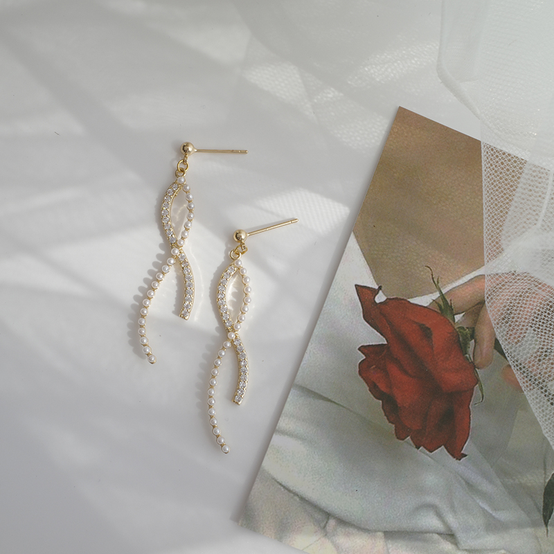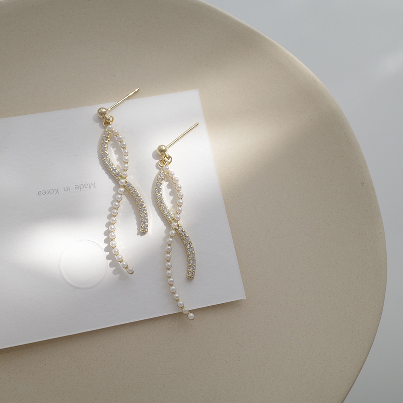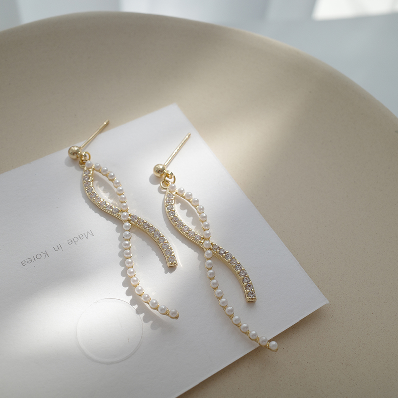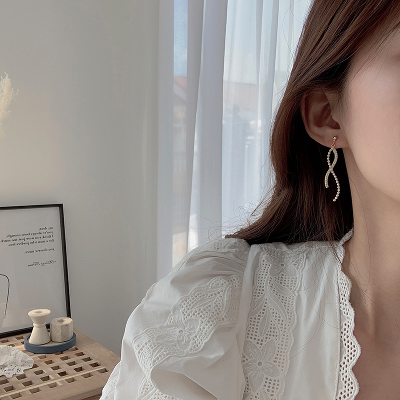 【迷度】925銀針溫柔珍珠弧形耳線無耳洞耳夾耳墜女 氣質 長款1入