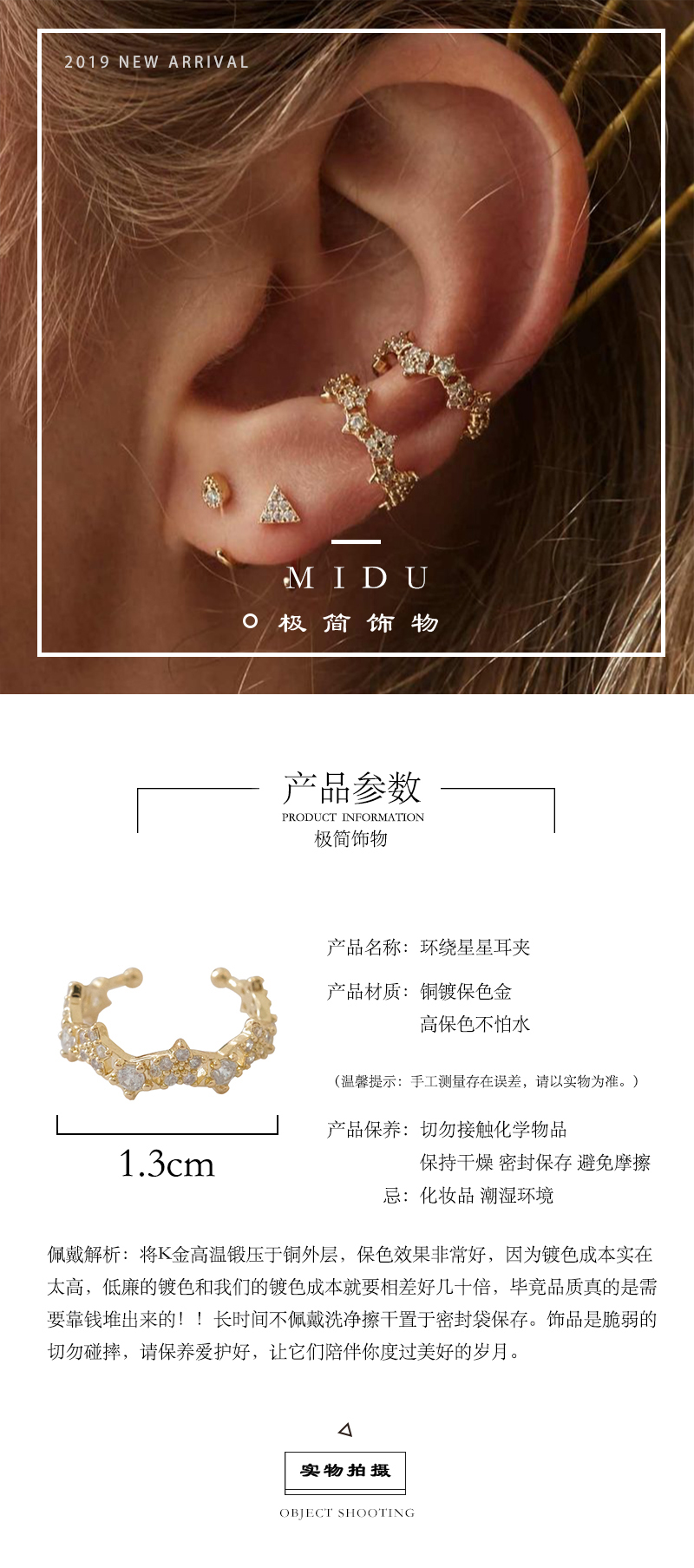 【迷度】精致鋯鉆星星耳骨夾ins超仙無耳洞可調節耳夾女復古港味1入