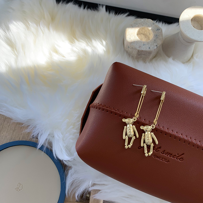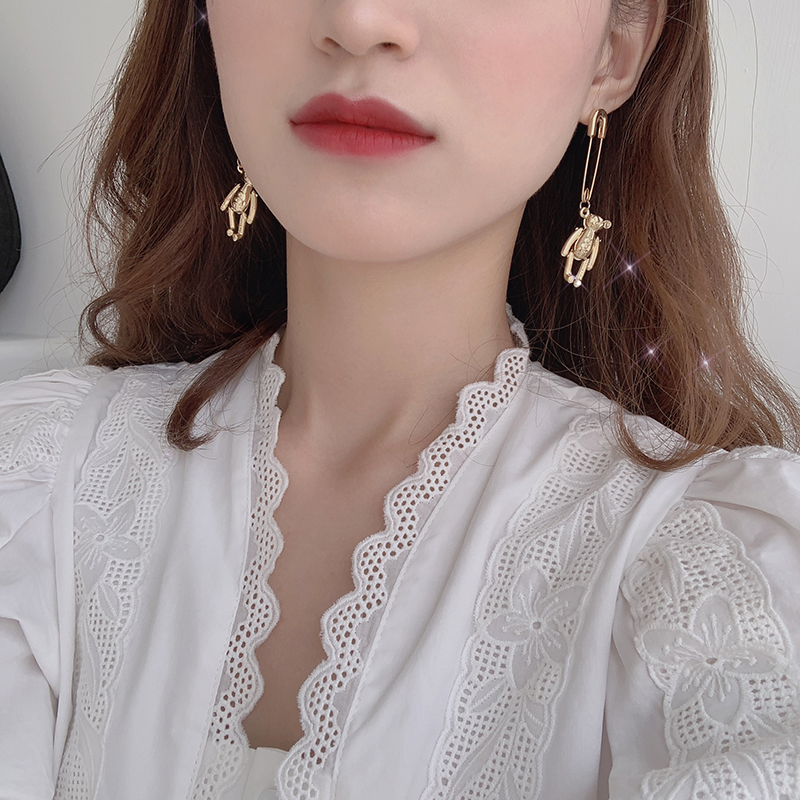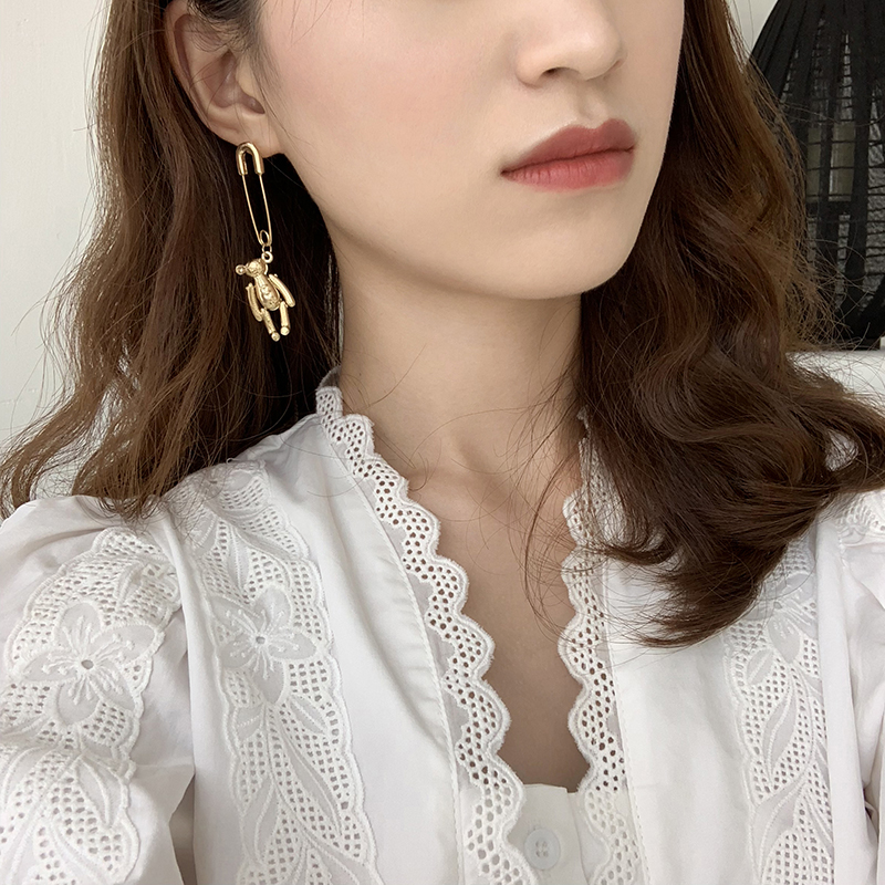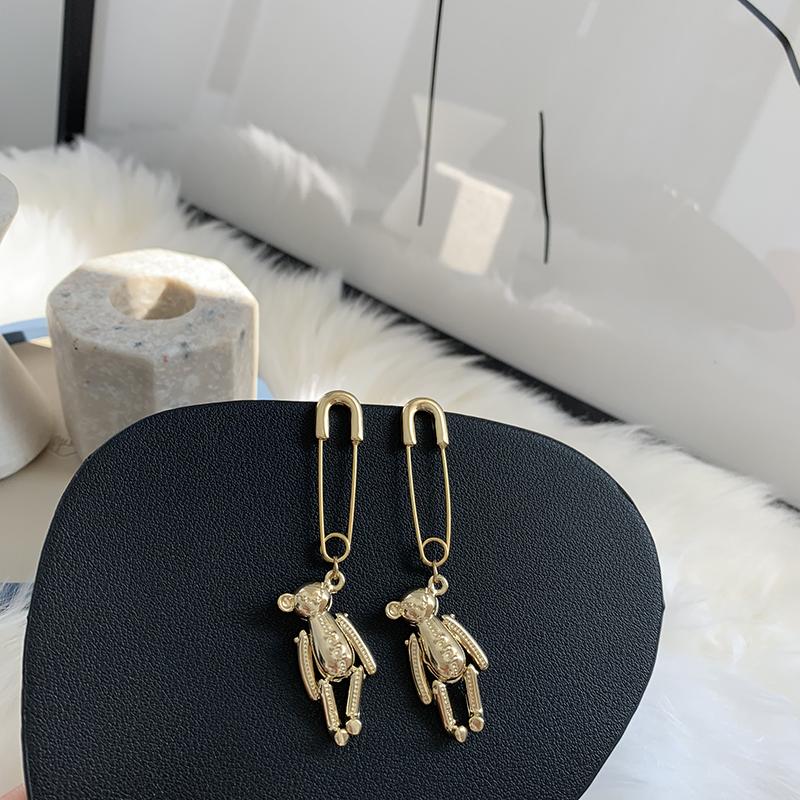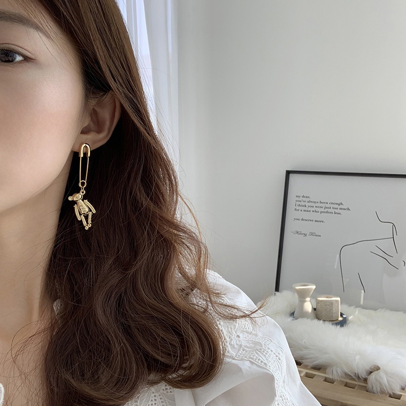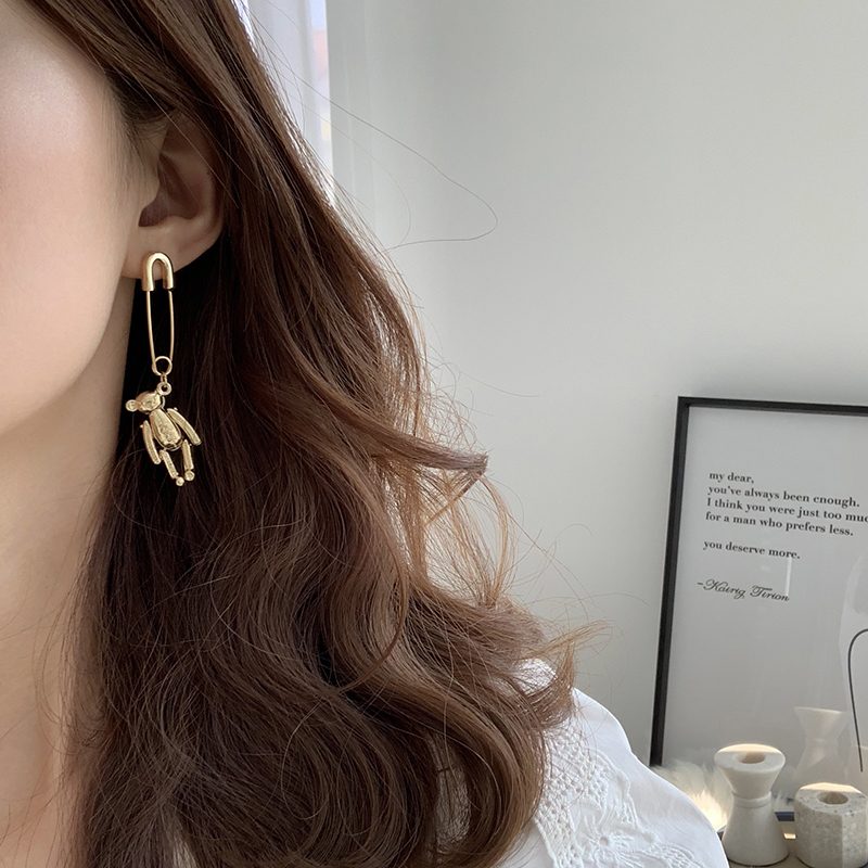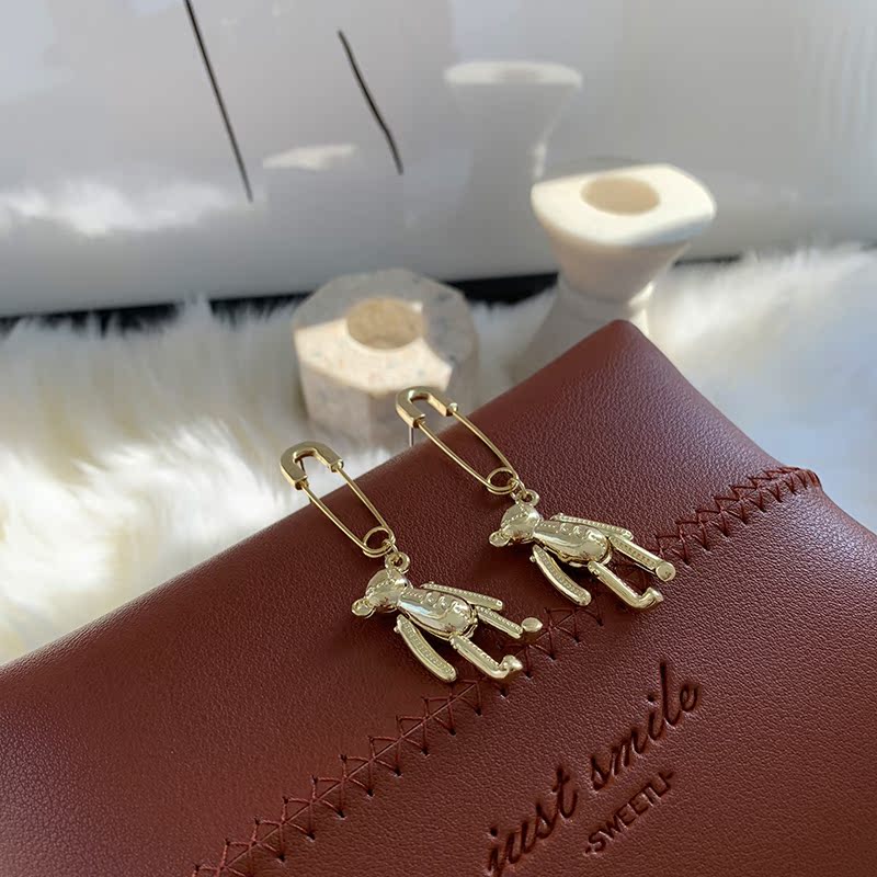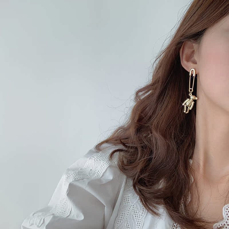 【迷度】S925銀針個性曲別針小熊耳環精致趣味耳飾小熊耳環 韓國1入