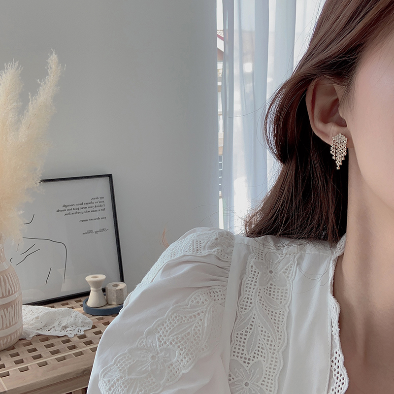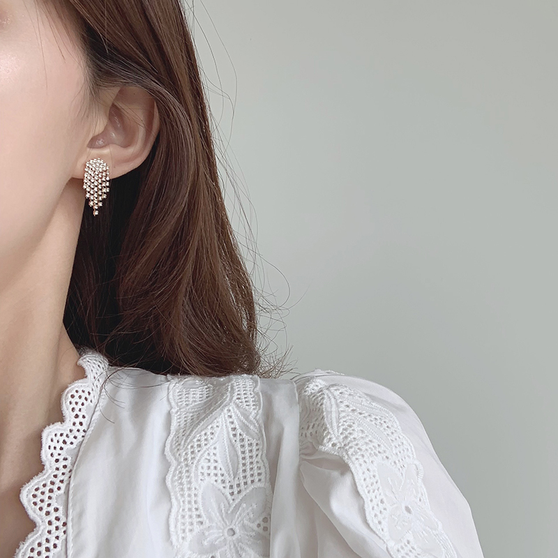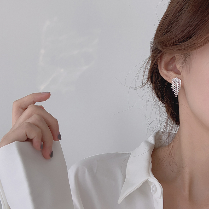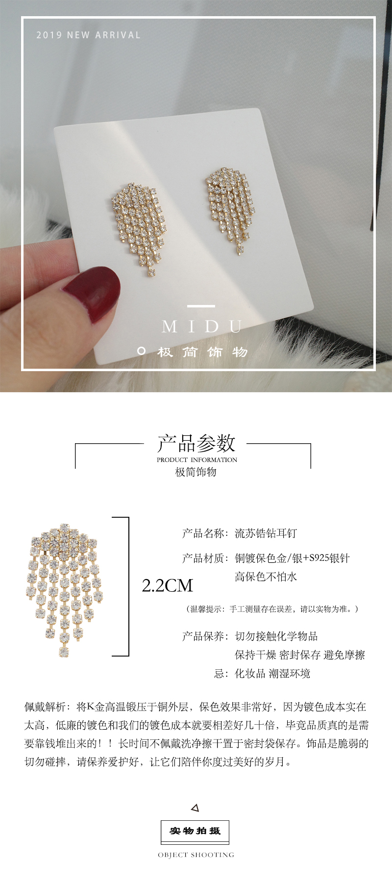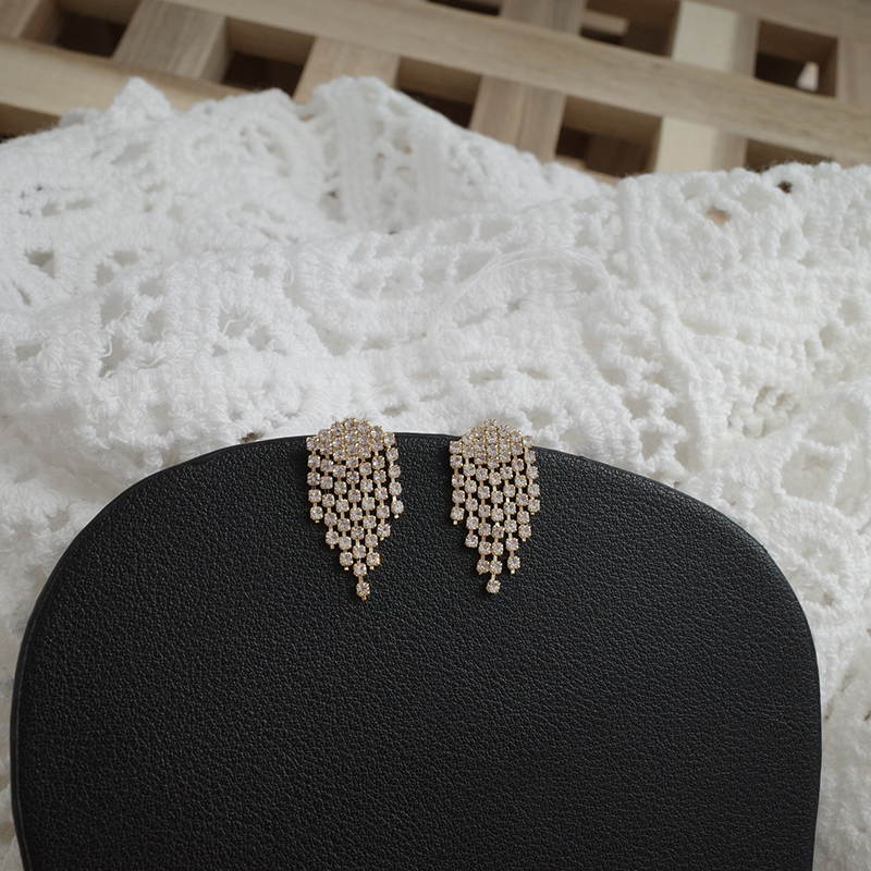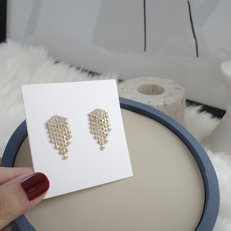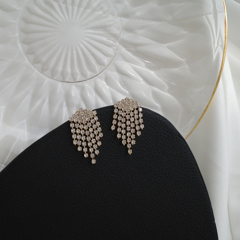 【迷度】S925銀針時髦高級感流蘇耳環女閃耀靈動鋯鉆耳釘短款耳墜1入