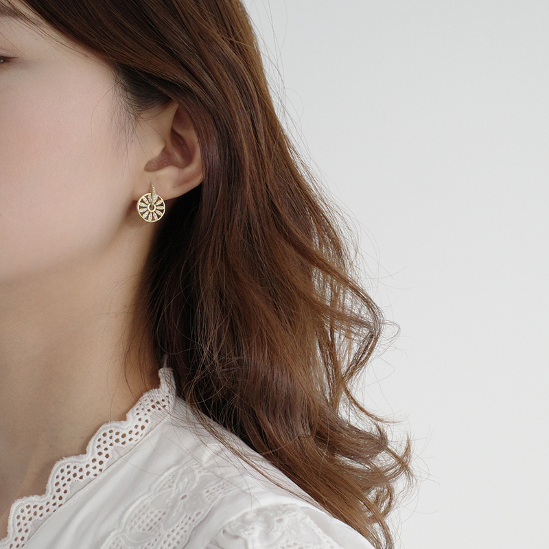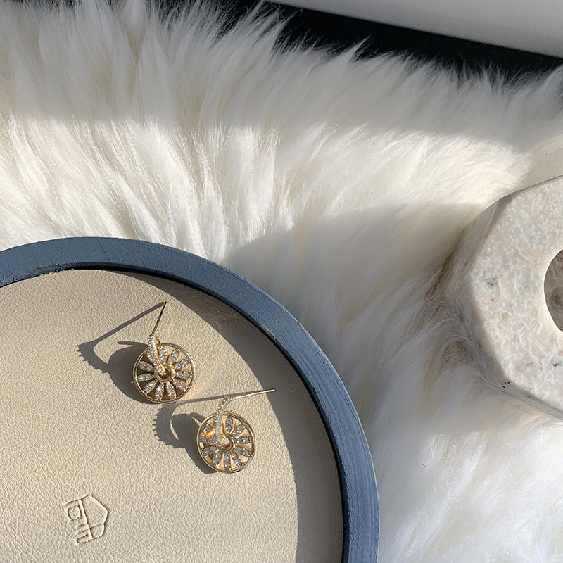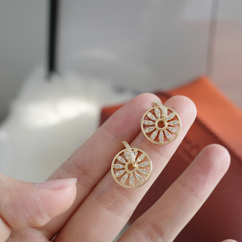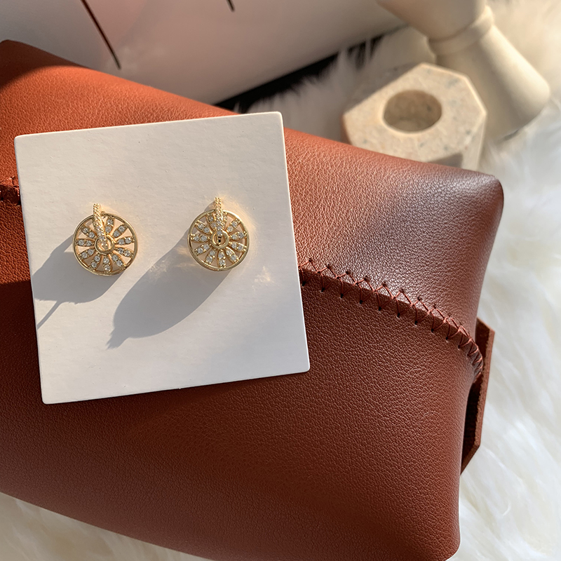 【迷度】S925銀針精致鋯鉆轉運輪耳釘圓盤耳環女氣質耳飾女冷淡風1入