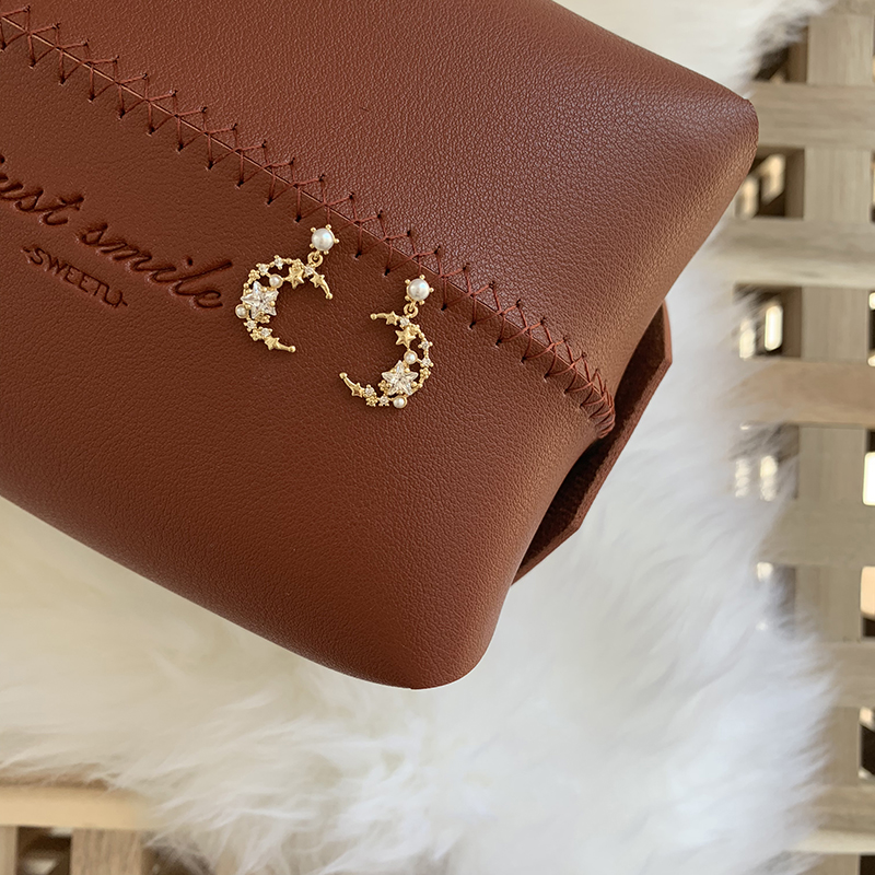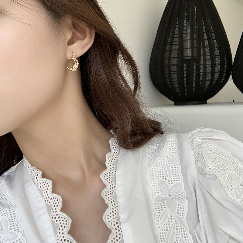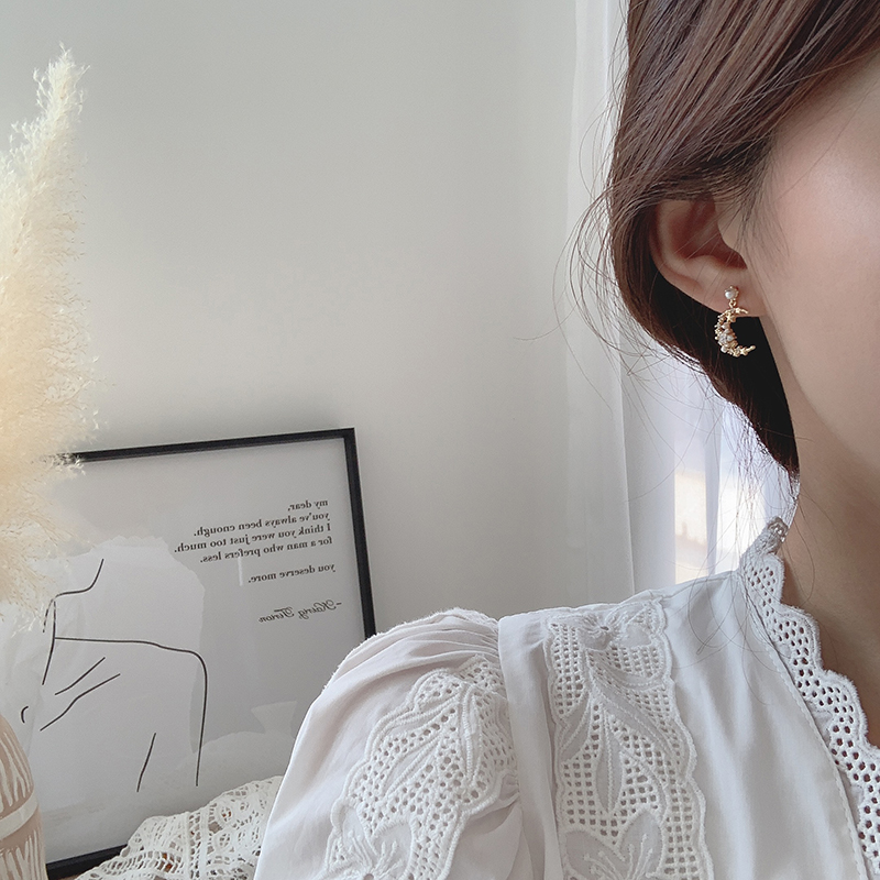 【迷度】S925銀針珍珠耳釘鋯鉆精致月亮超仙新款耳墜耳環2019新款1入