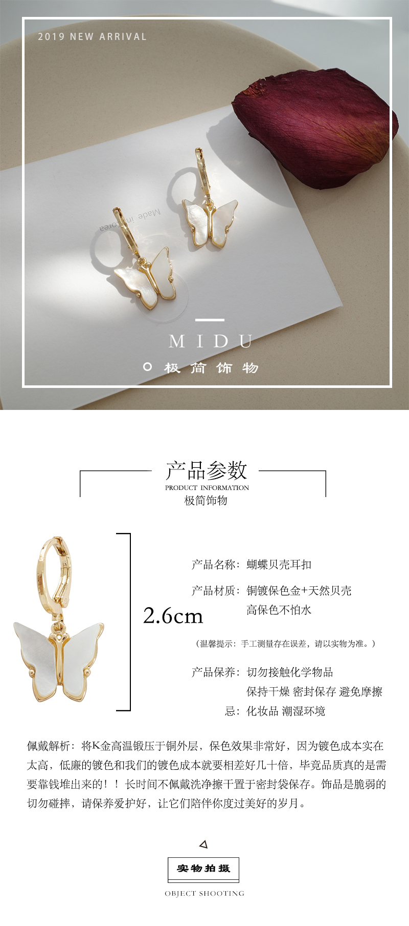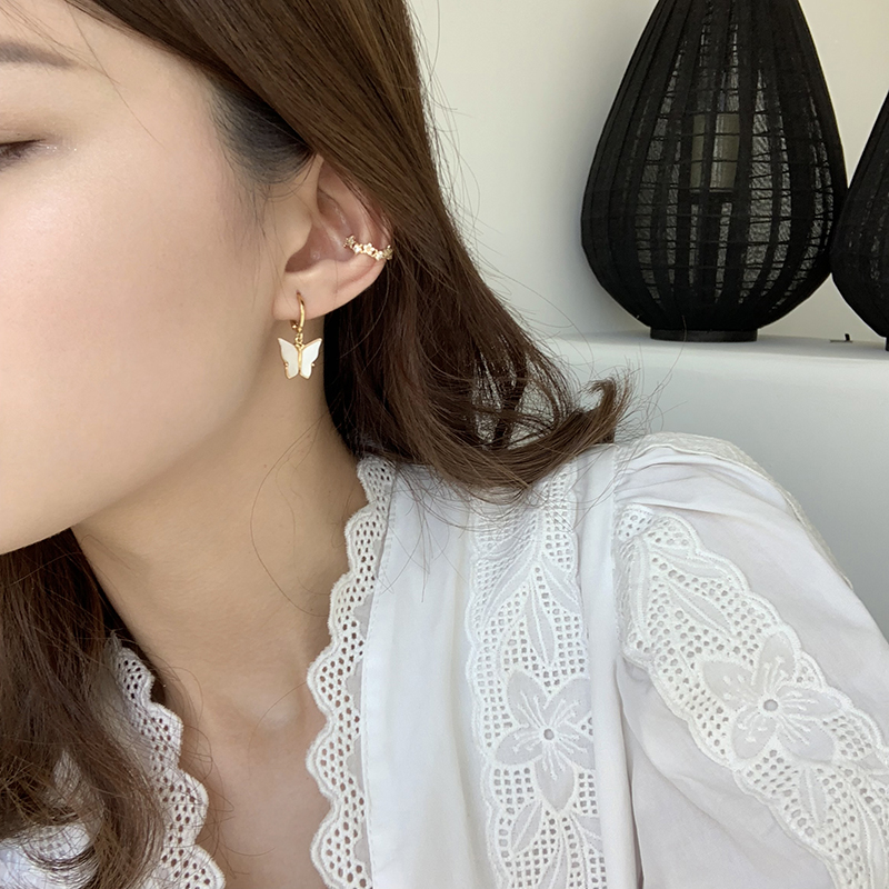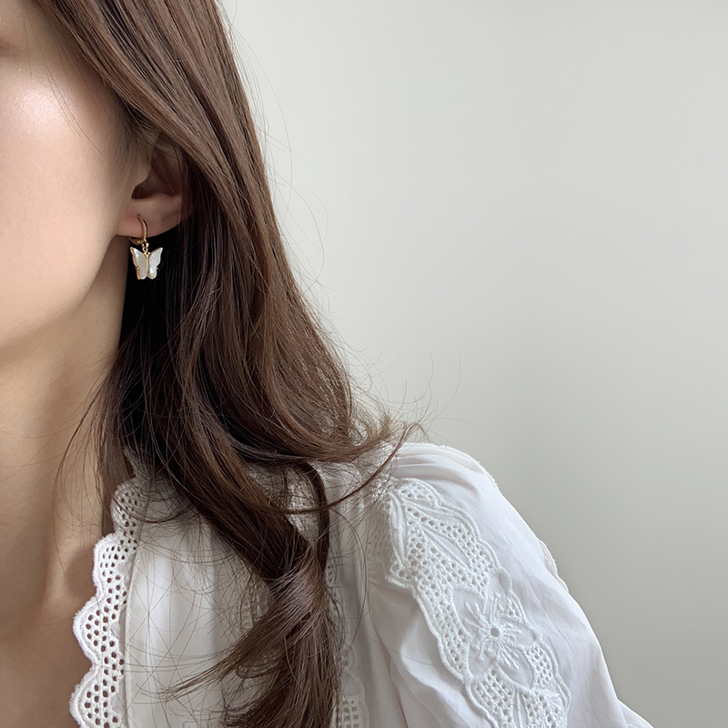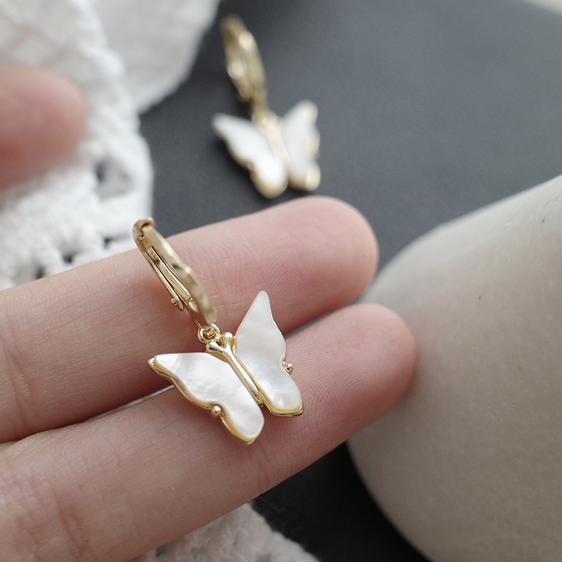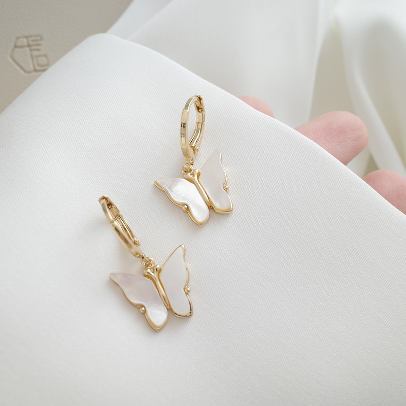 【迷度】溫柔氣質天然貝殼蝴蝶耳環耳扣無耳洞耳夾耳環2019新款潮1入