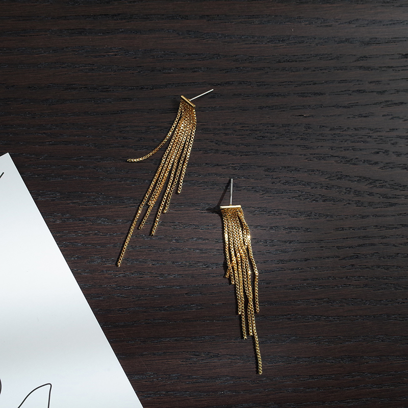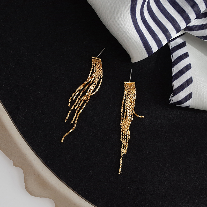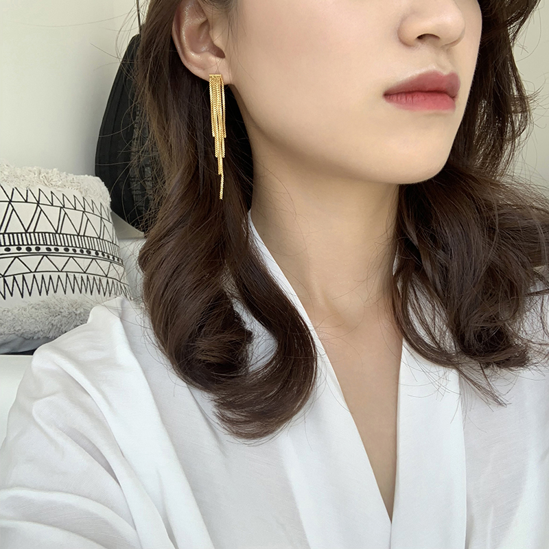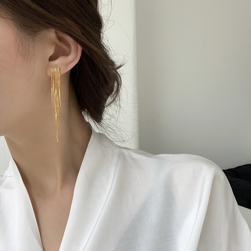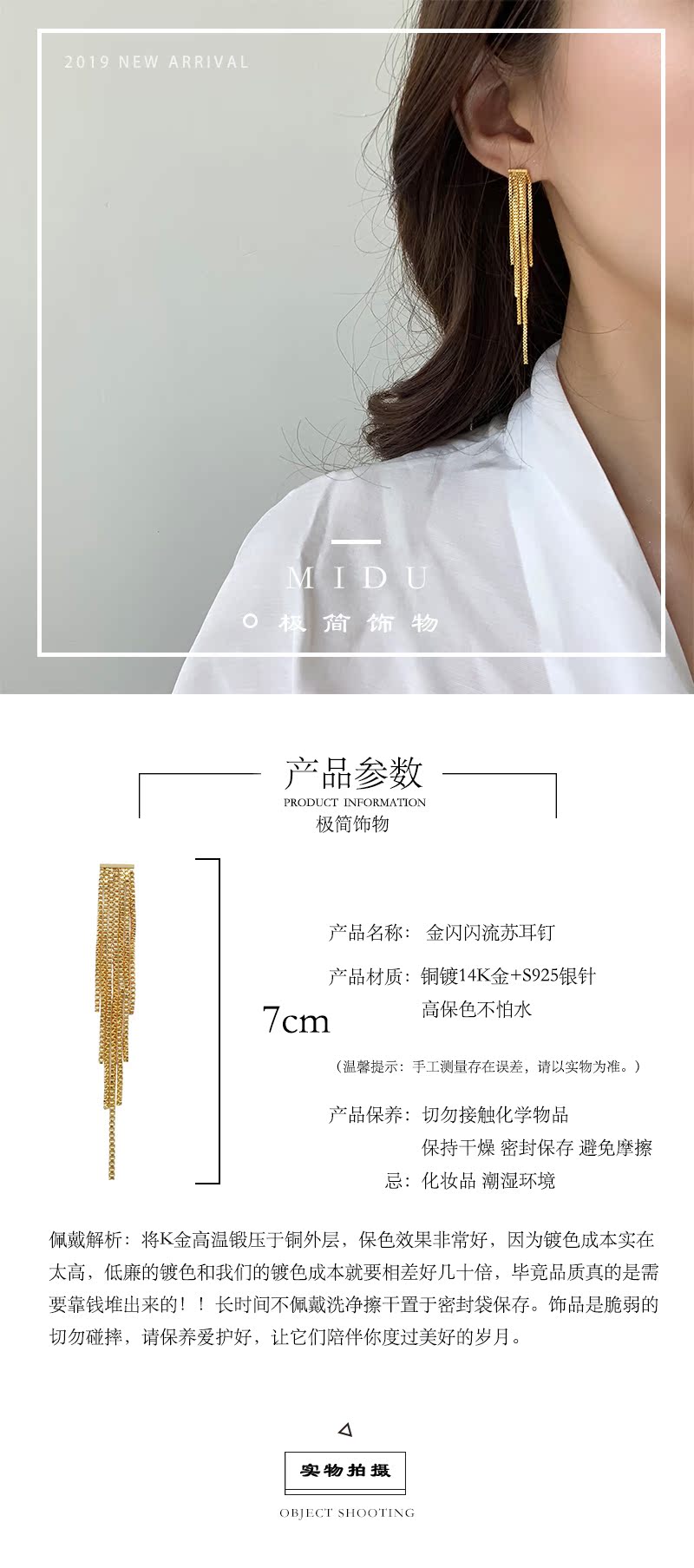 【迷度】S925銀針夸張時髦金閃閃流蘇長款顯臉瘦耳環女長款氣質1入