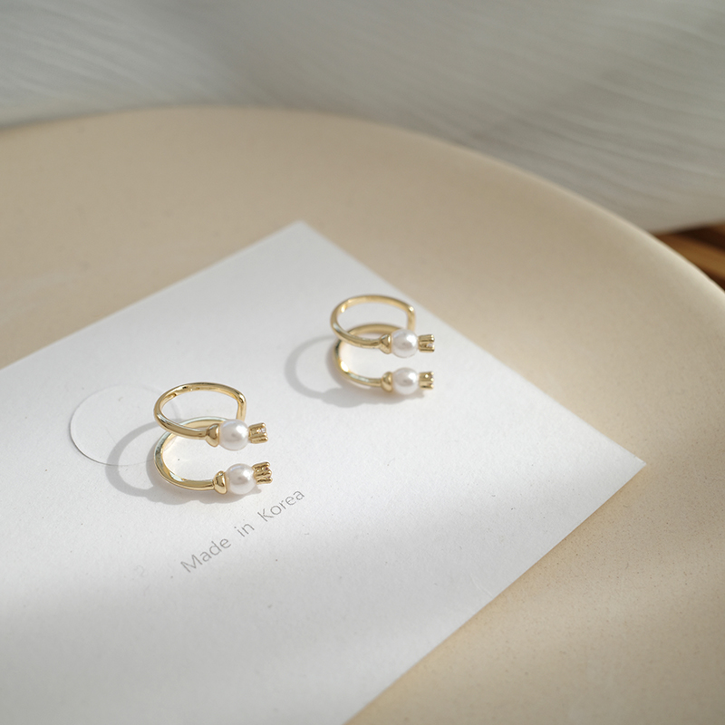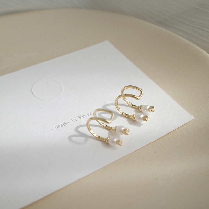 【迷度】雙層氣質珍珠耳夾無耳洞鑲鉆耳骨精致超仙耳夾女復古港味1入
