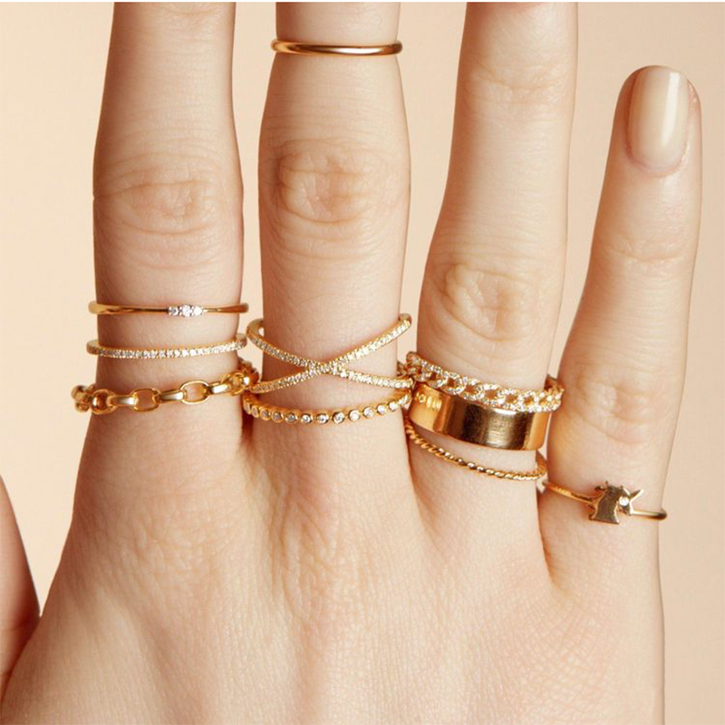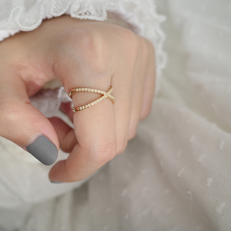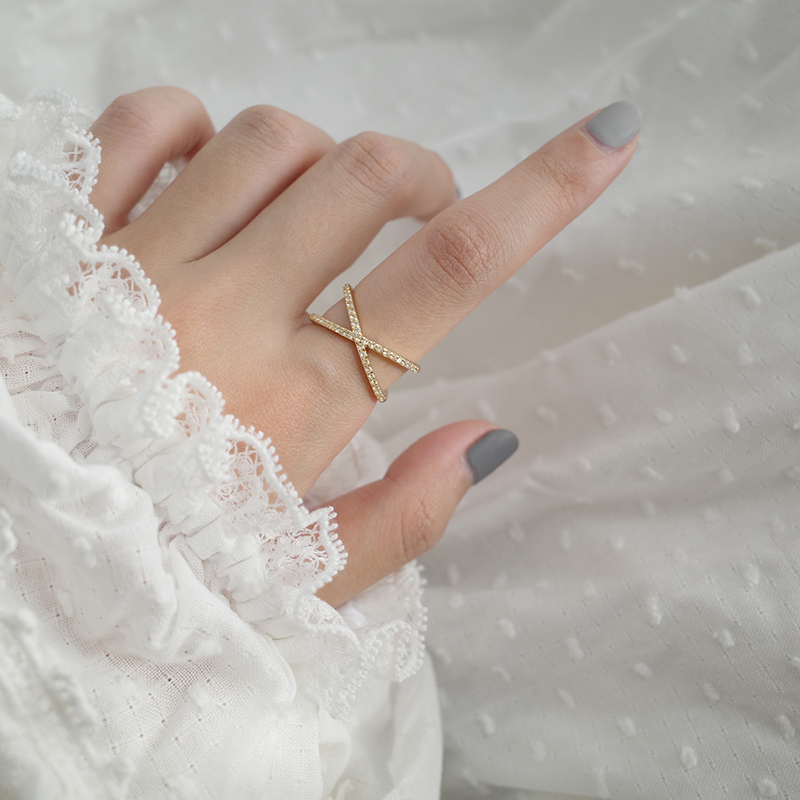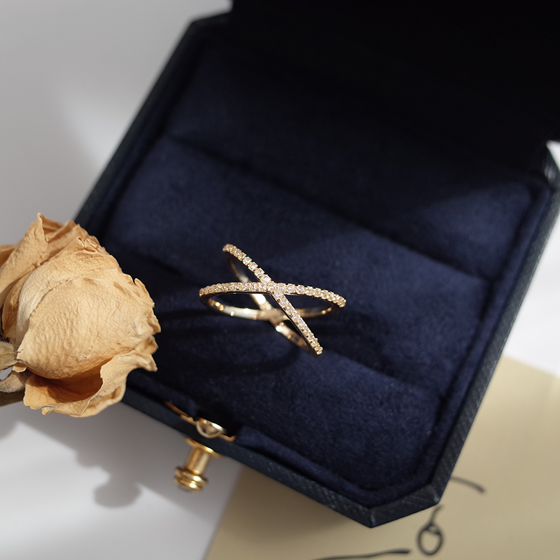 【迷度】14K包金精致超閃鋯鉆交叉氣質韓國百搭戒指女 時尚 個性1入
