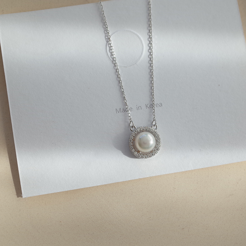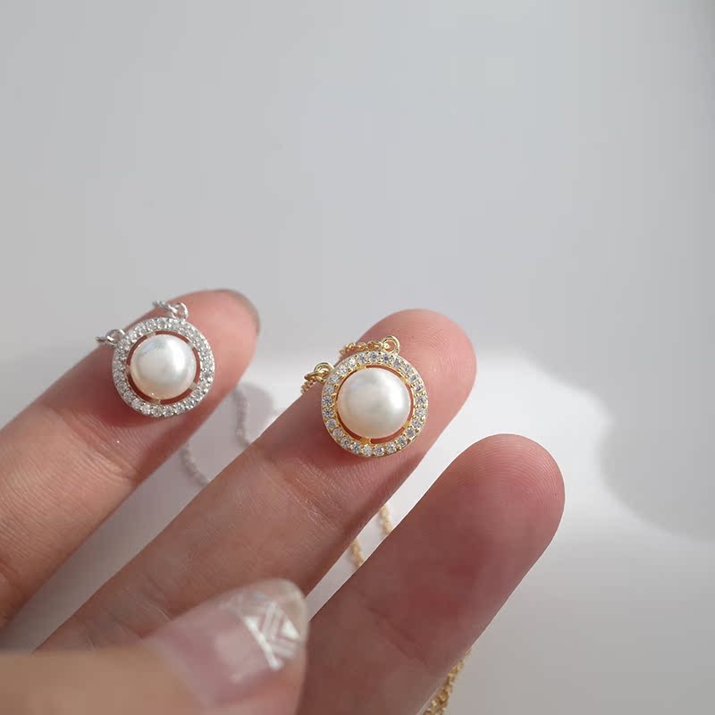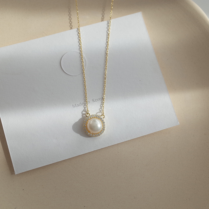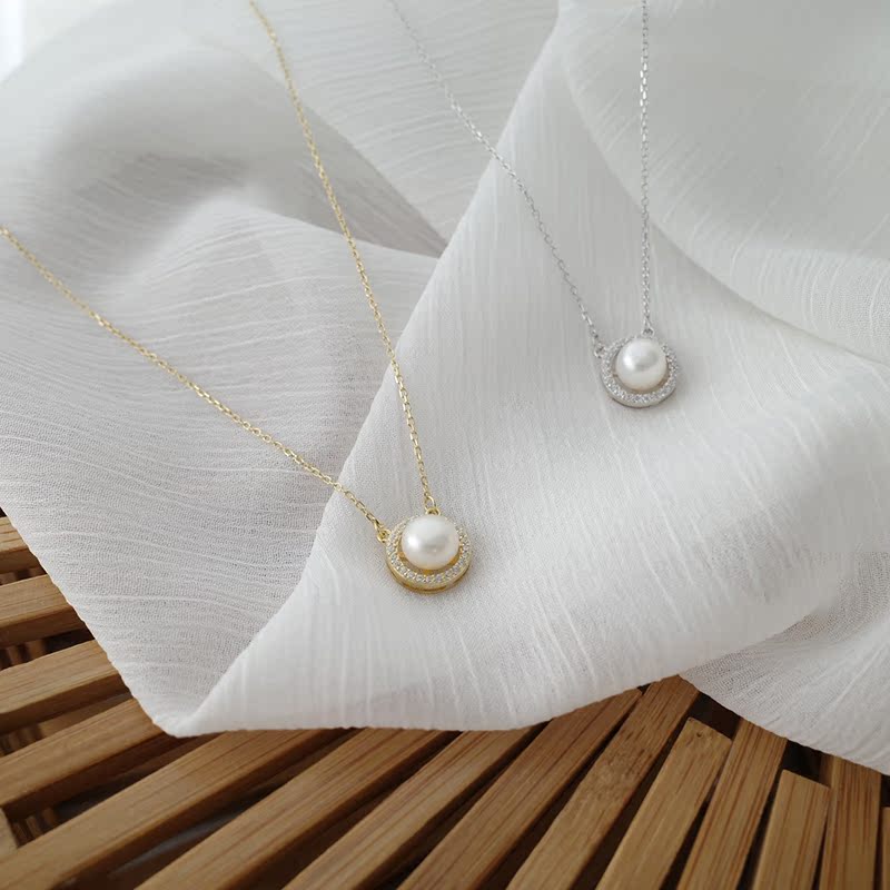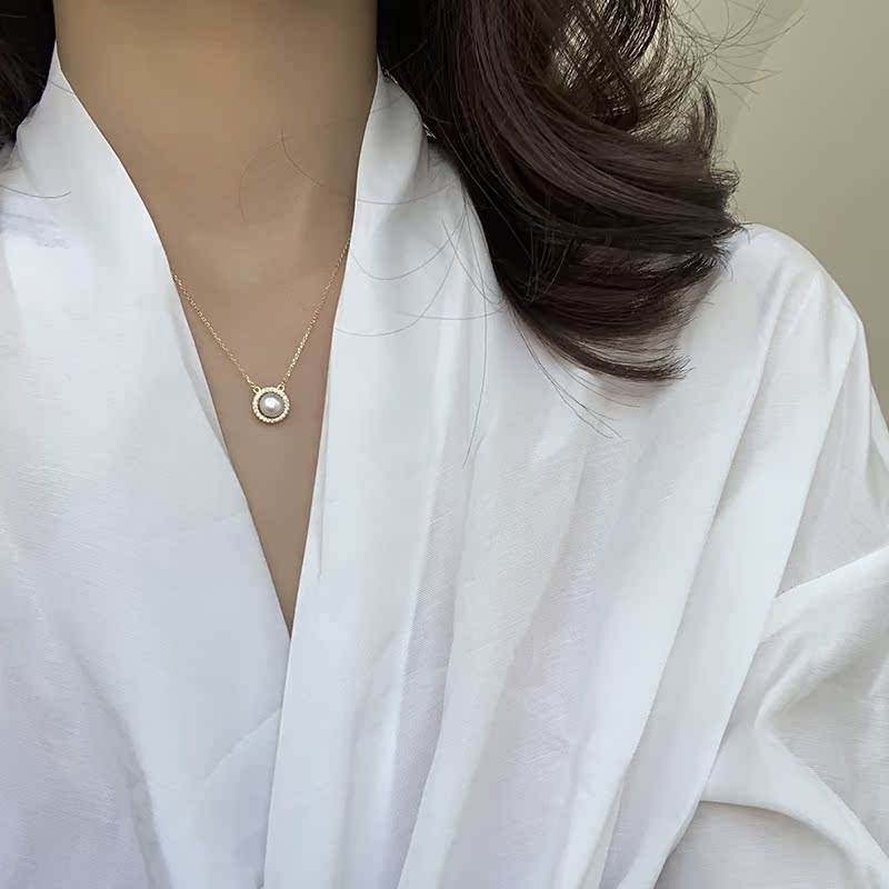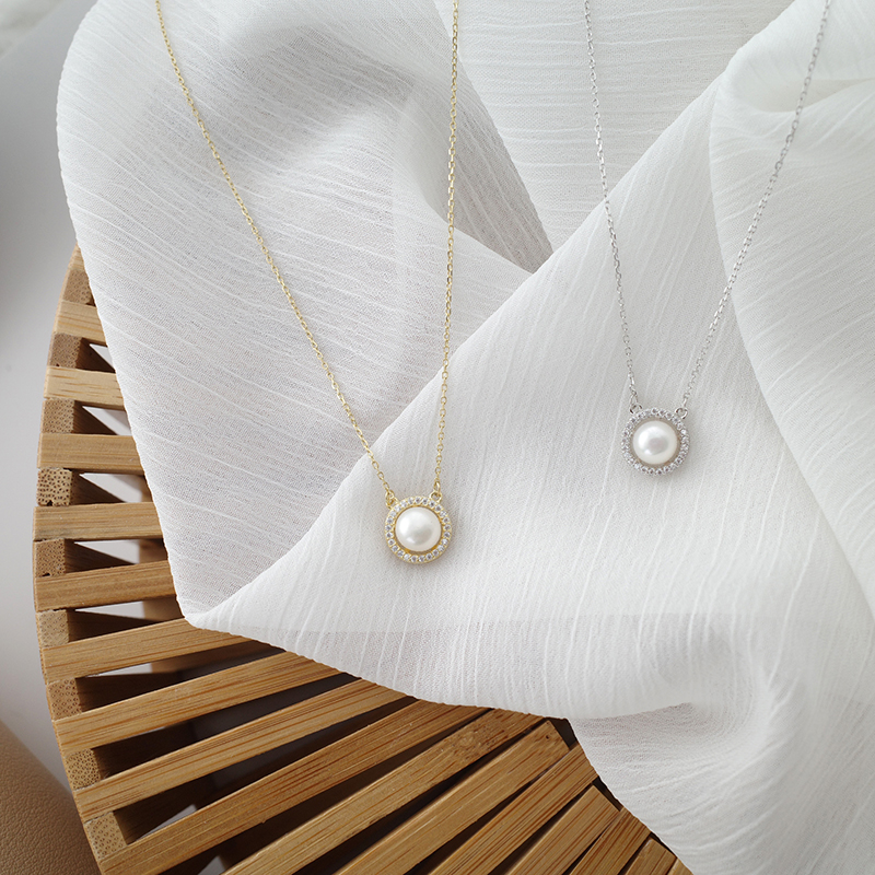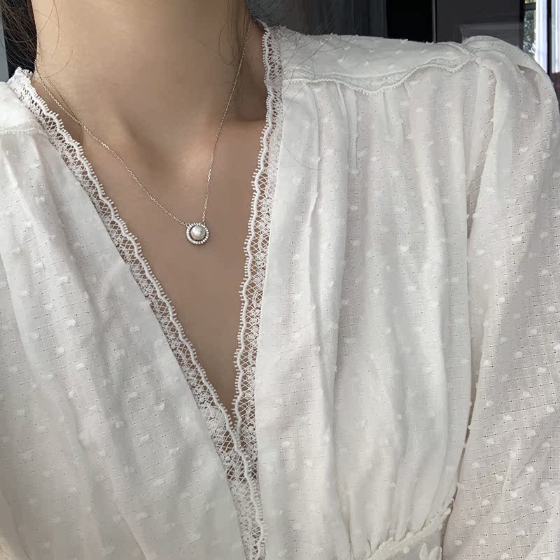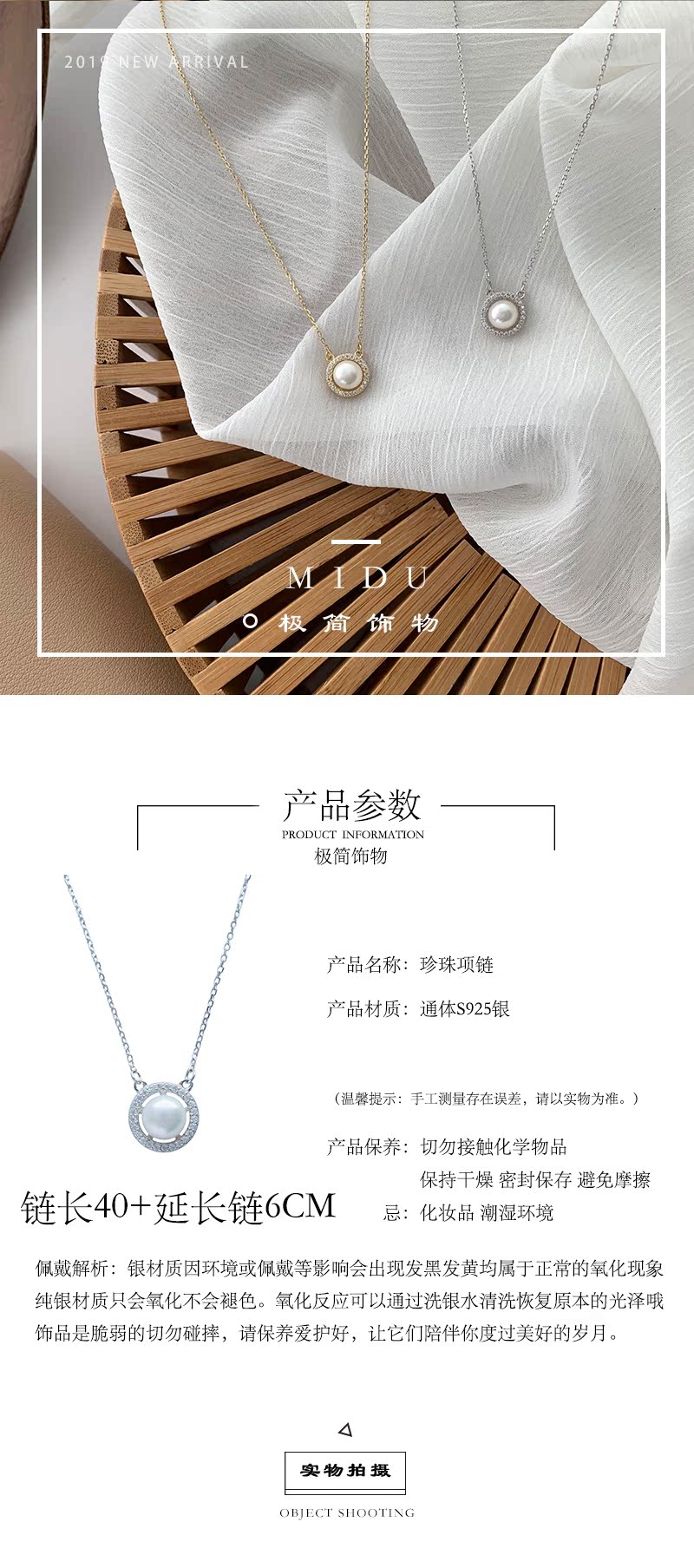 【迷度】通體925銀圓形珍珠項鏈簡約氣質鎖骨鏈百搭項鏈女潮 網紅1入