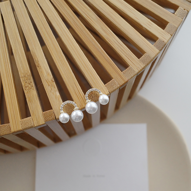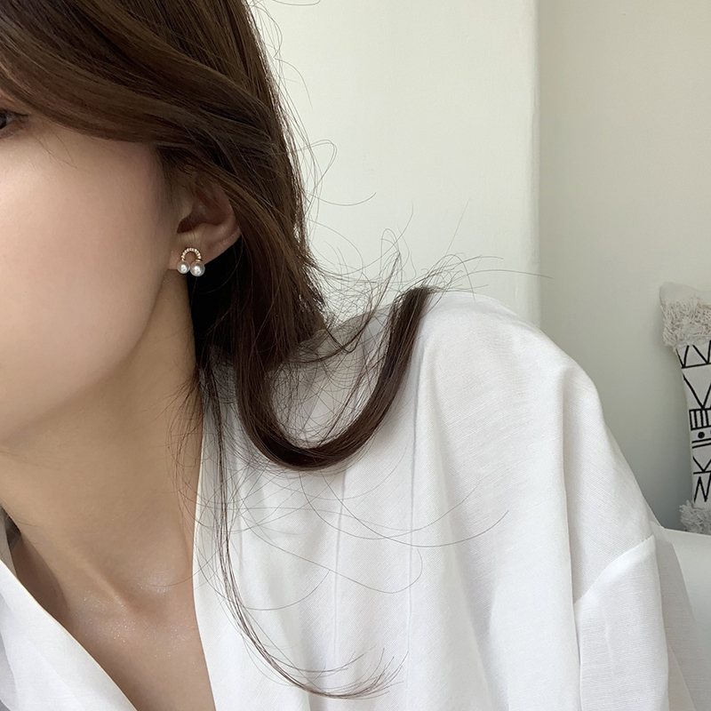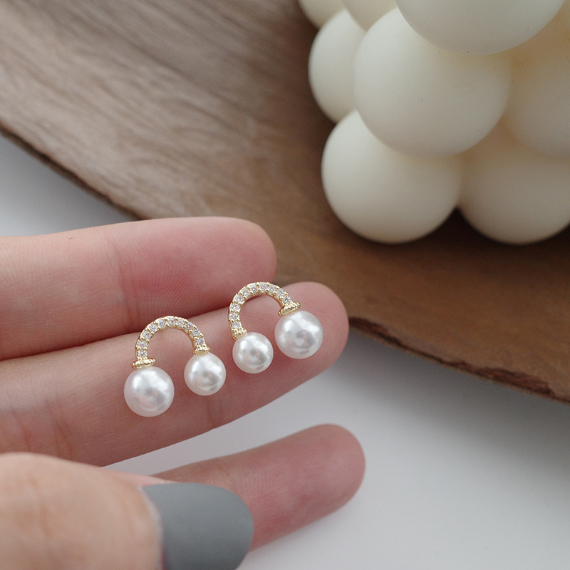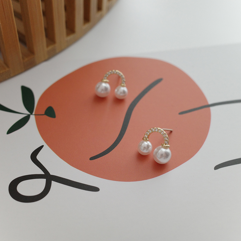 【迷度】S925銀針氣質彩虹耳釘精致珍珠韓國耳飾品女2019新款耳環1入