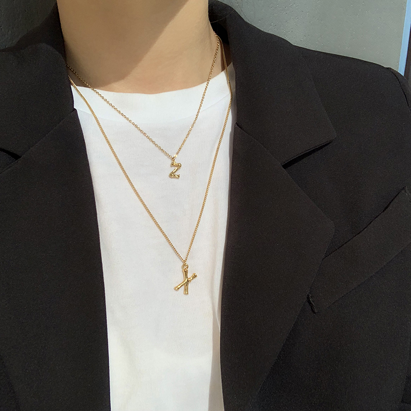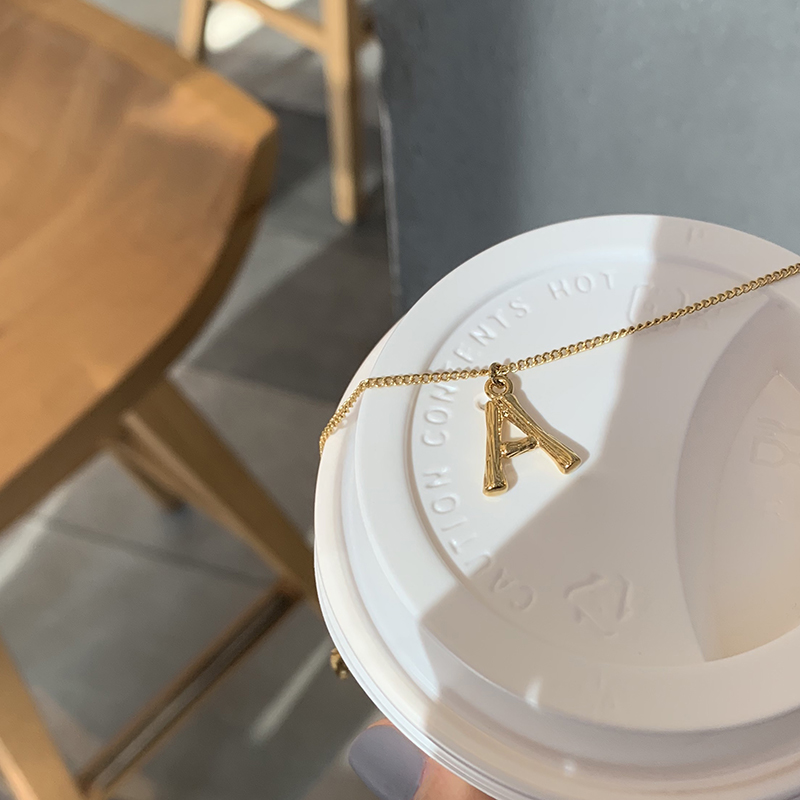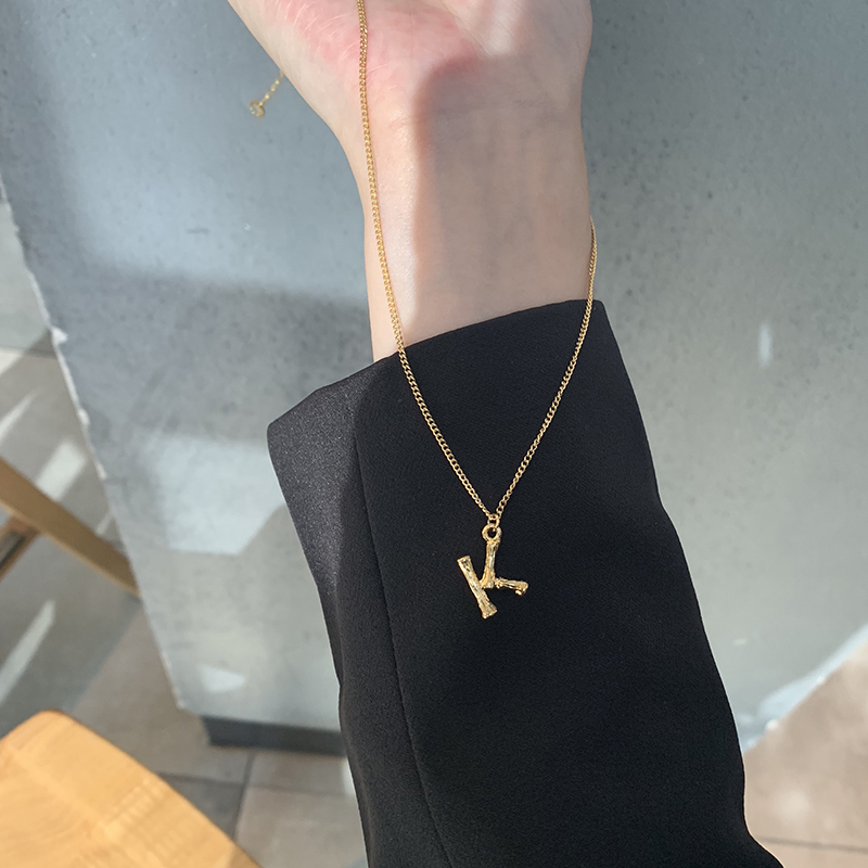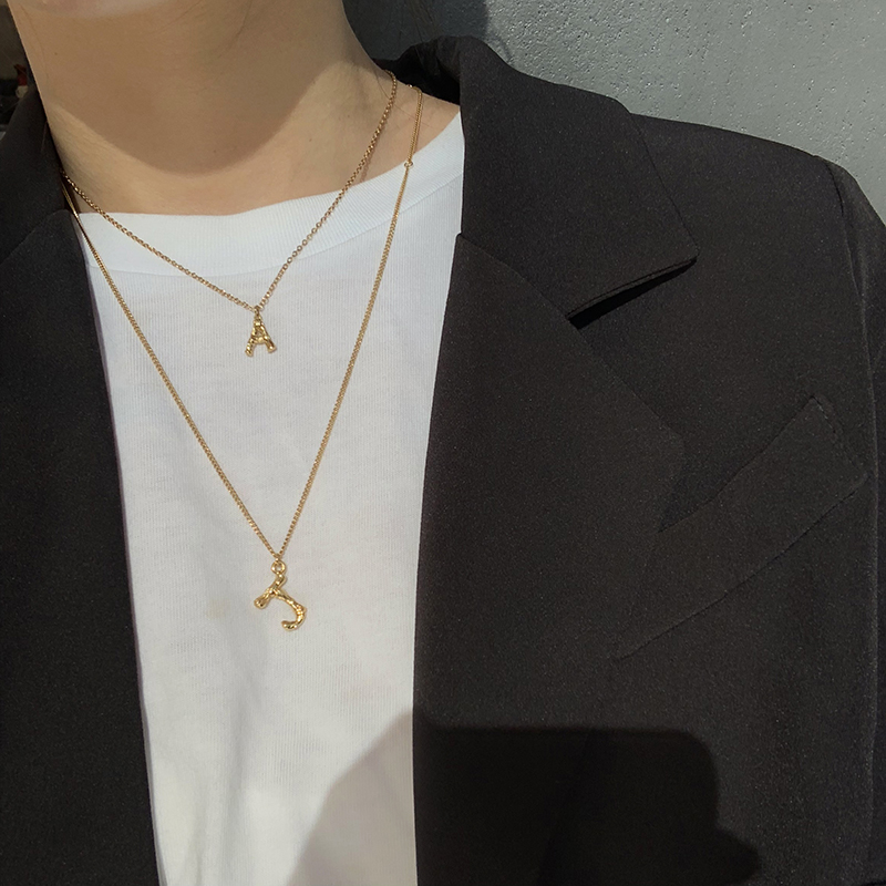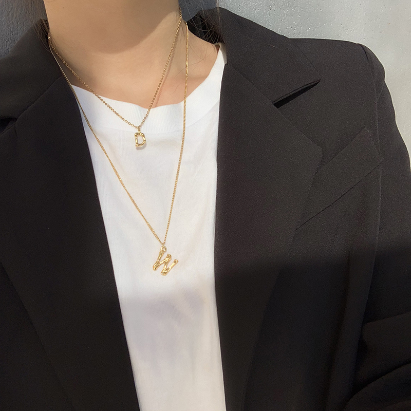 【迷度】14K包金竹節字母項鏈網紅鎖骨鏈 可疊戴項鏈女ins簡約1入