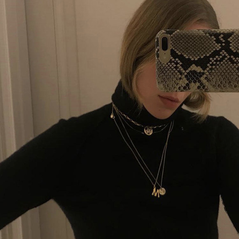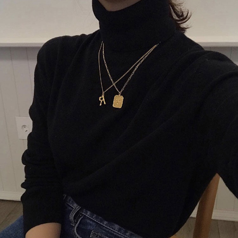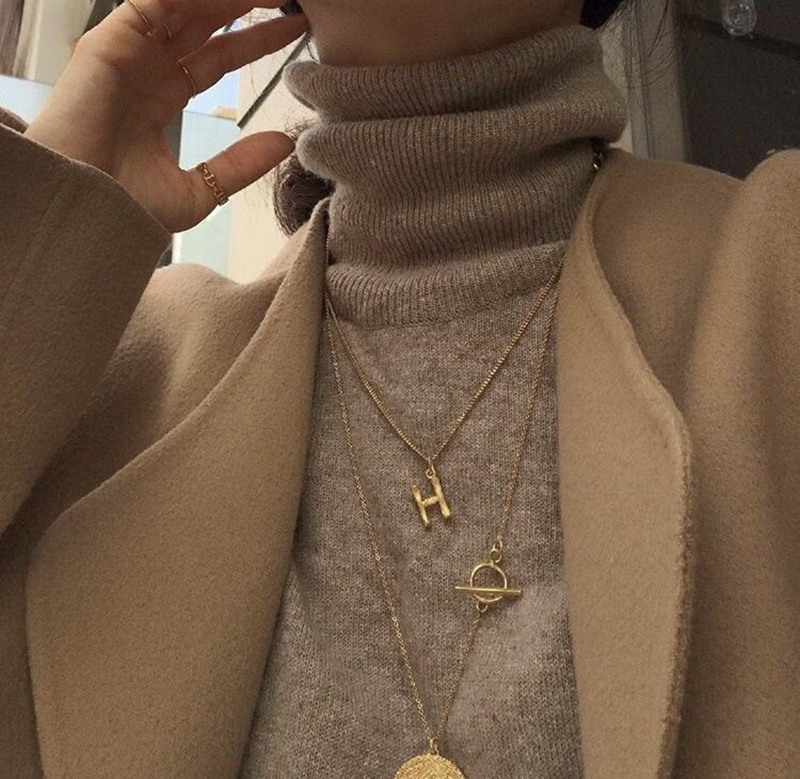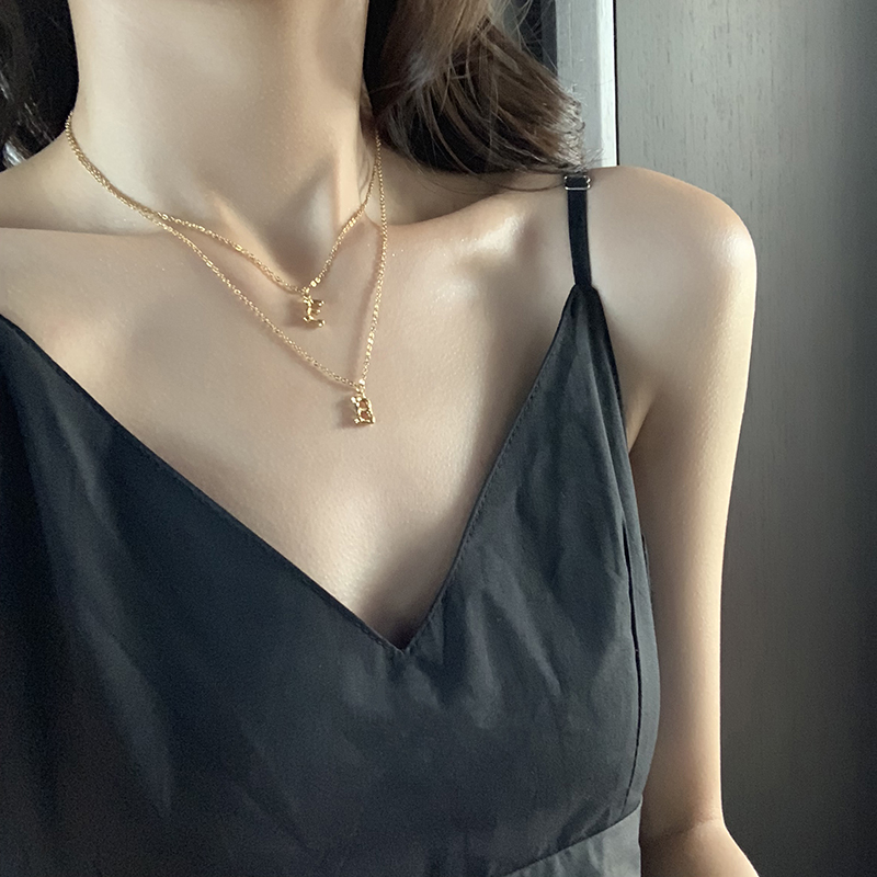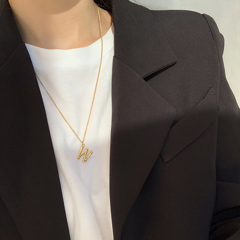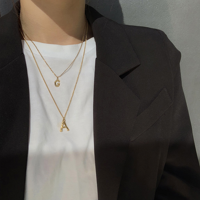 【迷度】14K包金竹節字母項鏈網紅鎖骨鏈 可疊戴項鏈女ins簡約1入