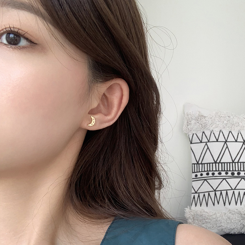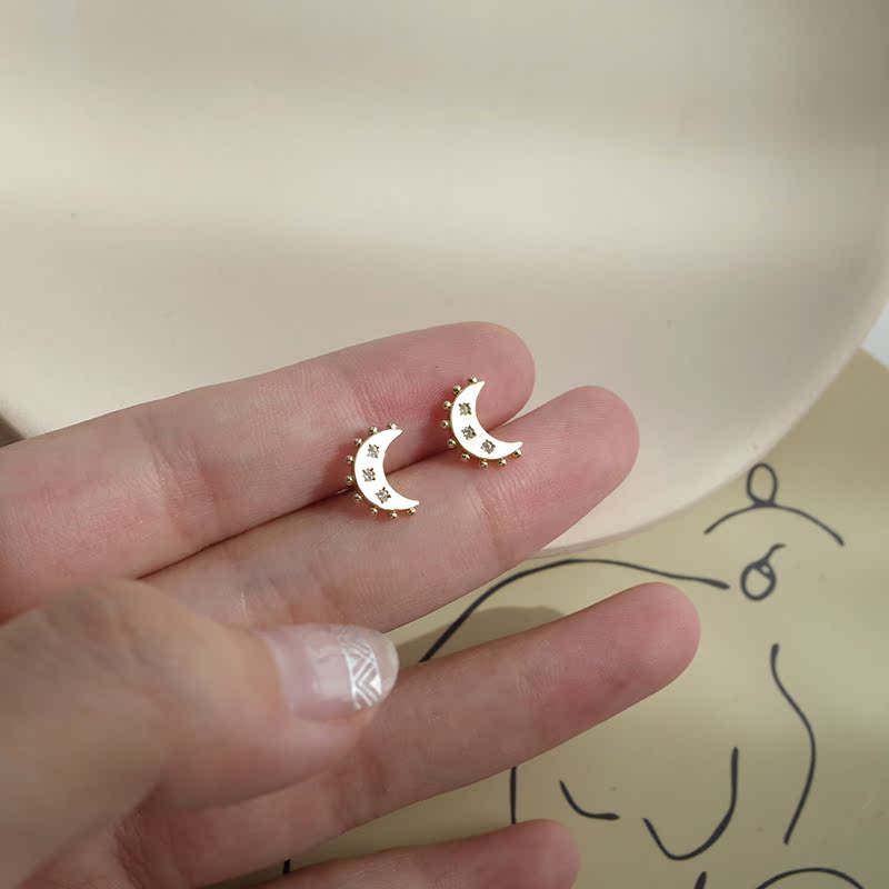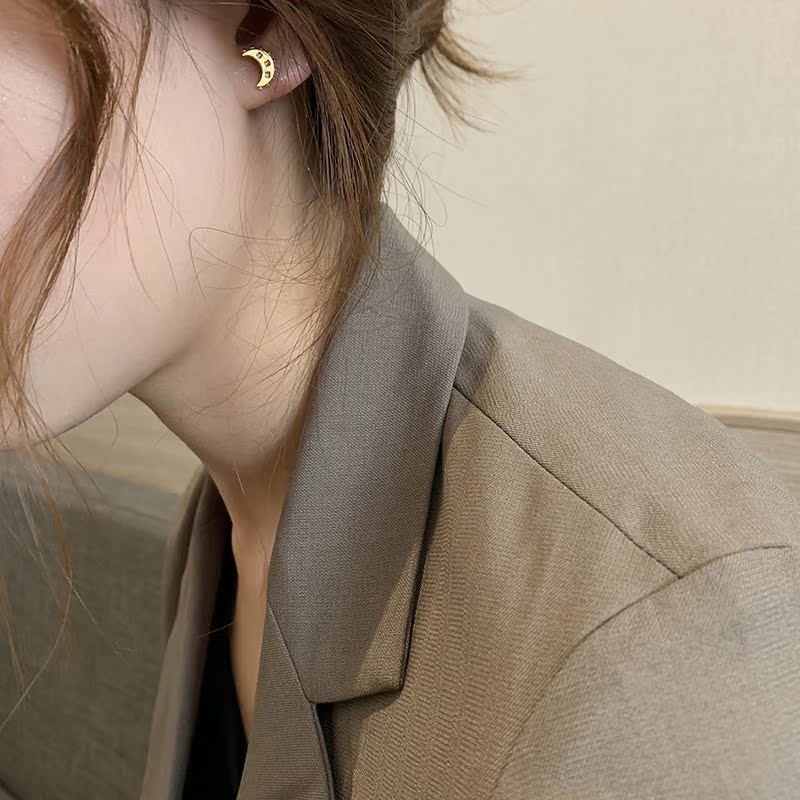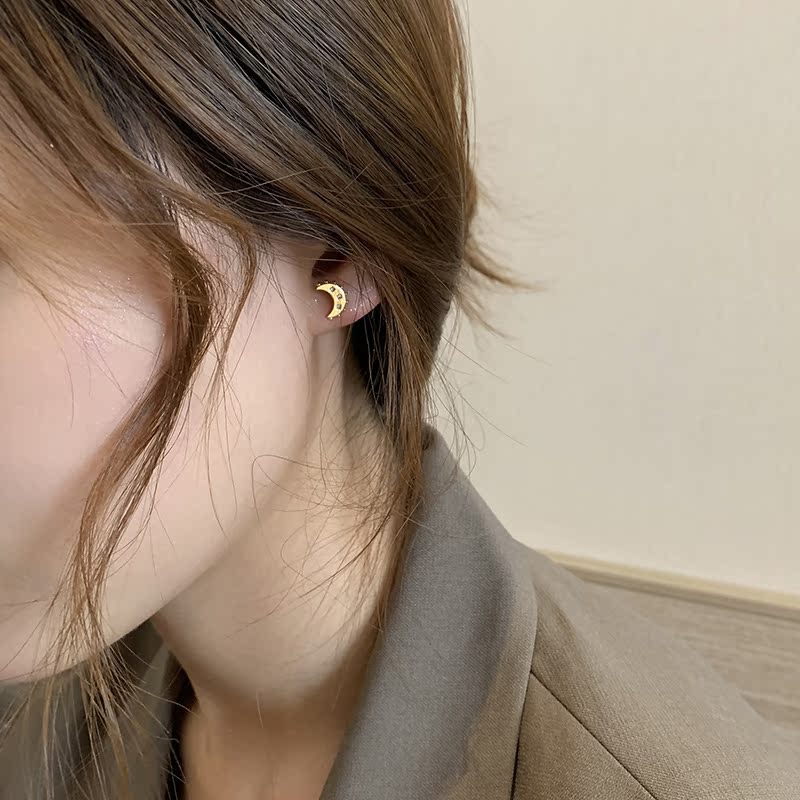 【迷度】S925銀針月亮鋯鉆簡單氣質百搭日常耳飾耳釘簡約 女 小巧1入