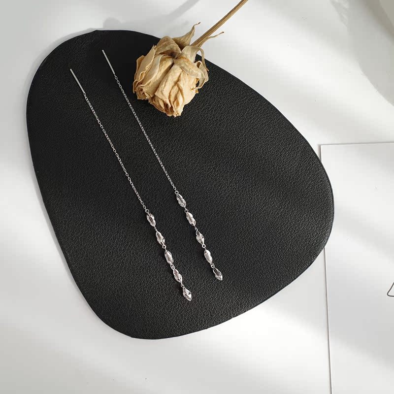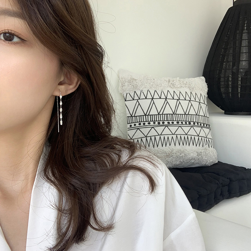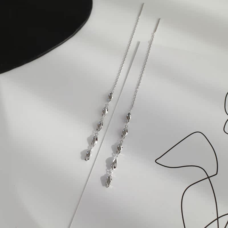 【迷度】通體925純銀超閃耳環長款流蘇耳線氣質耳墜顯臉瘦的耳線1入