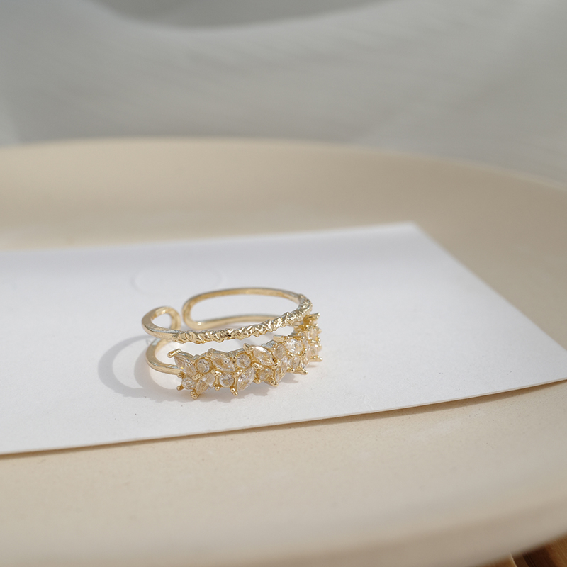 【迷度】14K包金鋯鉆戒指ins韓國百搭指環開口戒指女ins潮食指1入