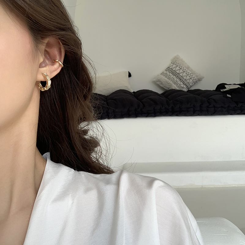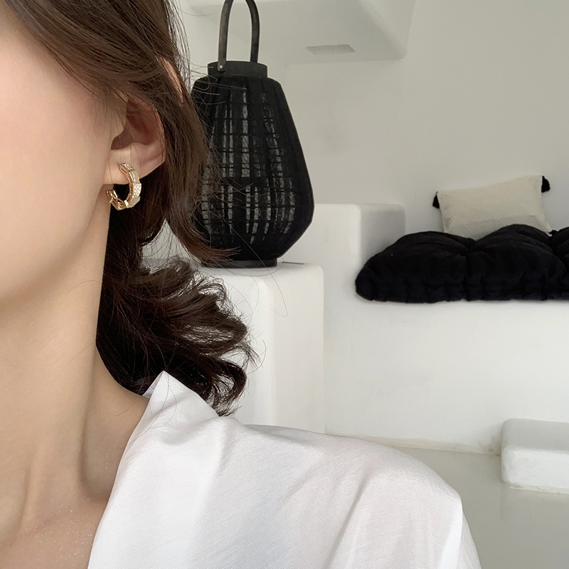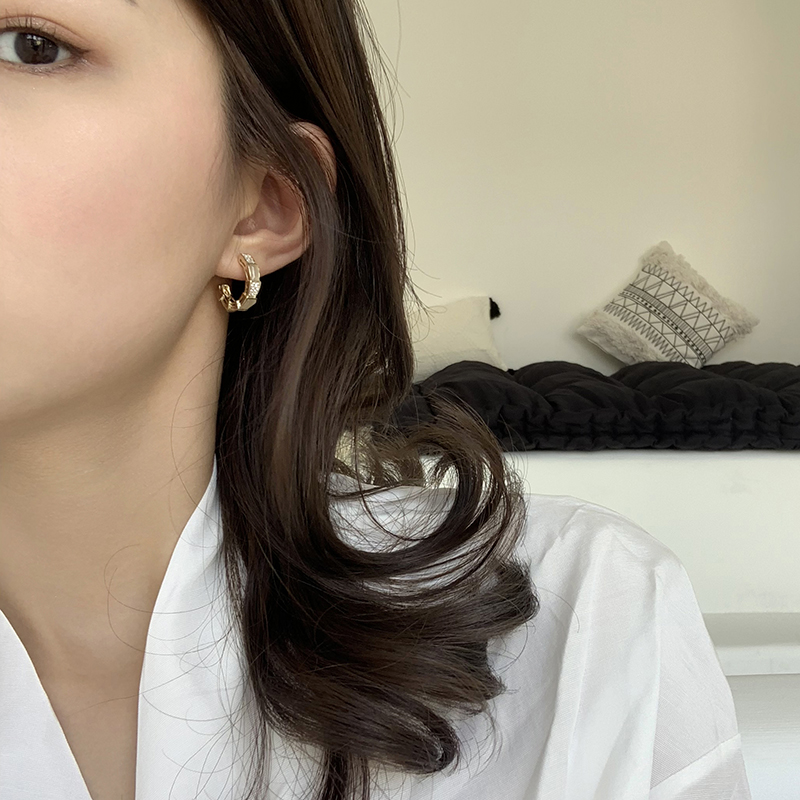 【迷度】S925銀針超閃鋯鉆耳環氣質耳圈冷淡風高級感耳環法式網紅1入