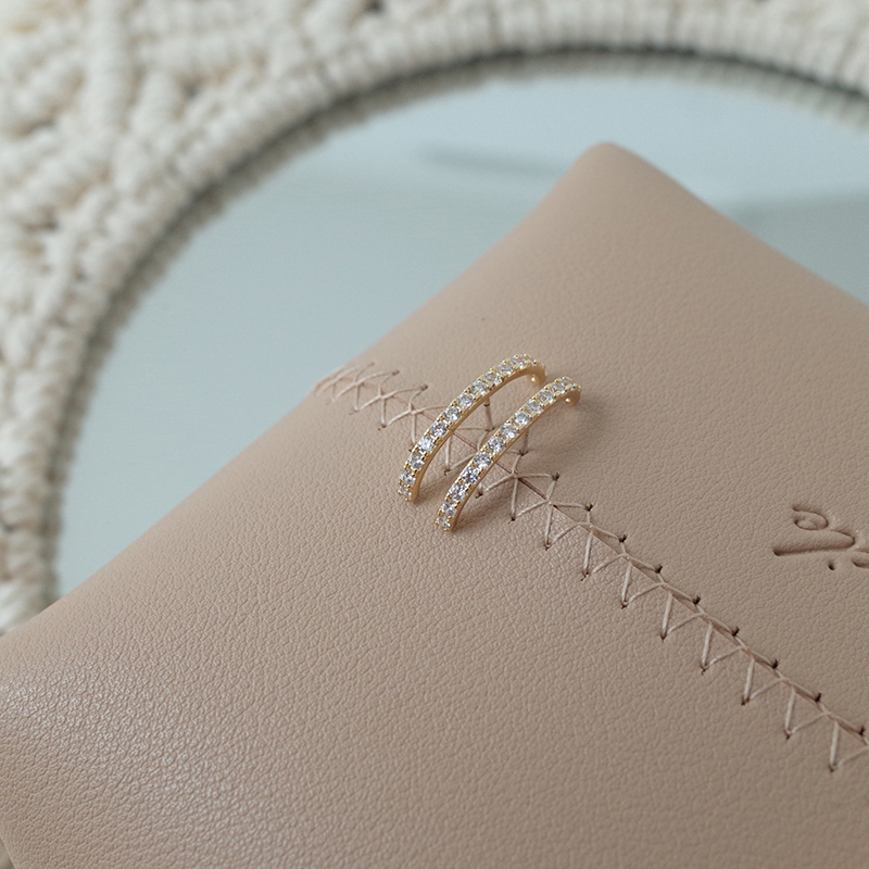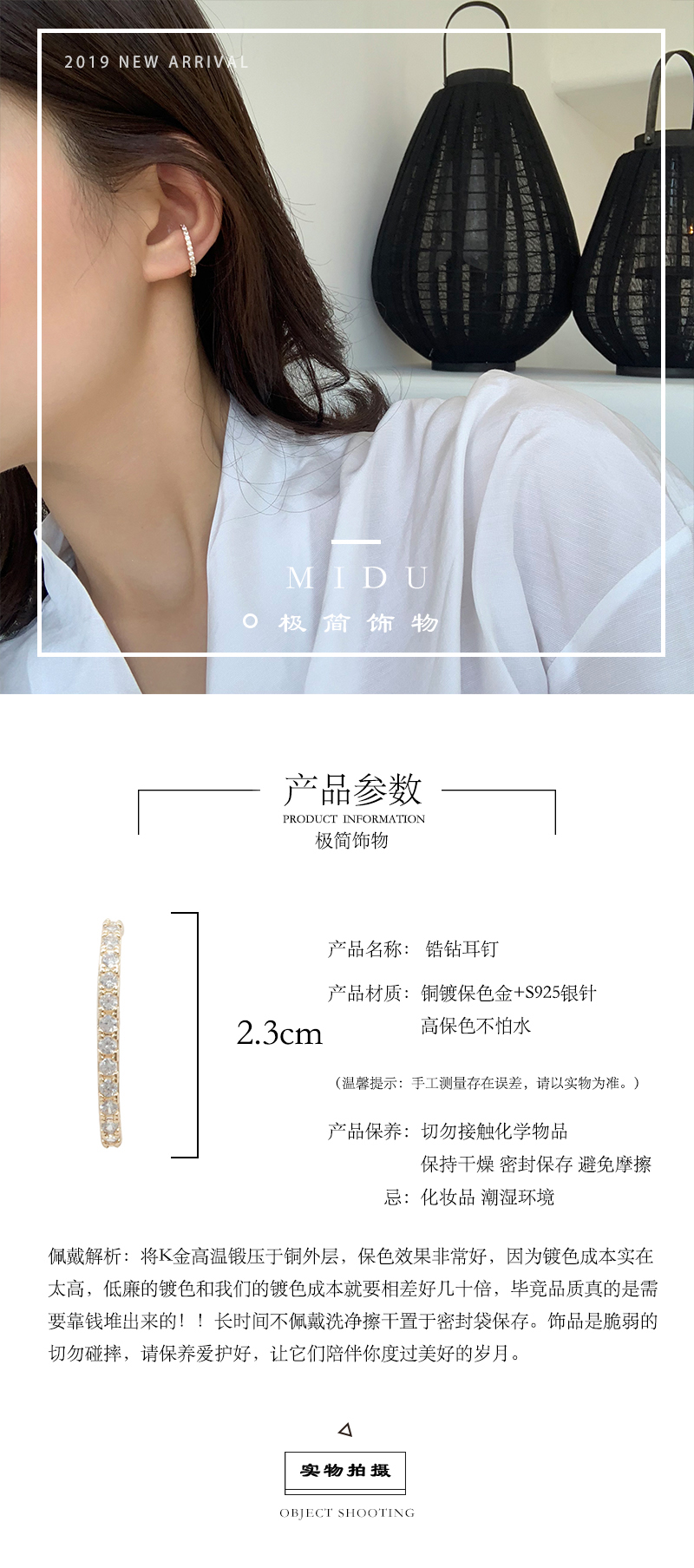 ins大熱的ji簡款耳釘剛開始樣品出了原圖的細版細版因為鉆太小 佩戴上耳不夠閃很暗淡再加上細版太細容易變形掉鉆毫不猶豫的把這款改良成粗版款的單看不出彩 上耳精致耐看又特別 推薦入鴨∼