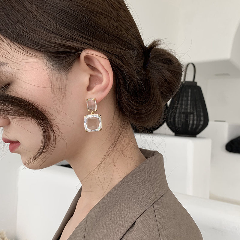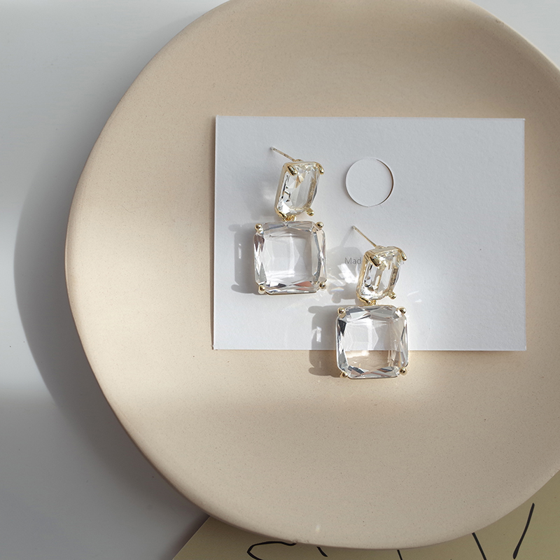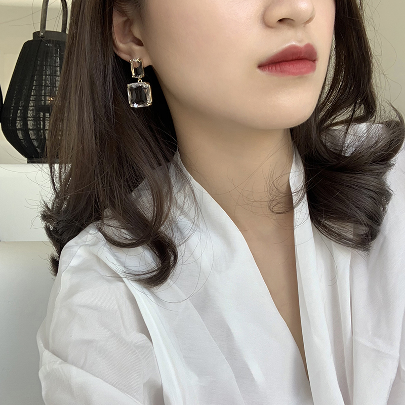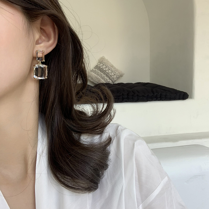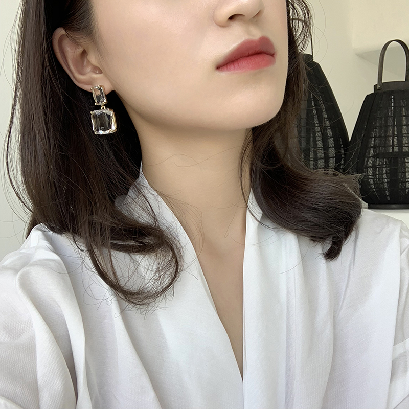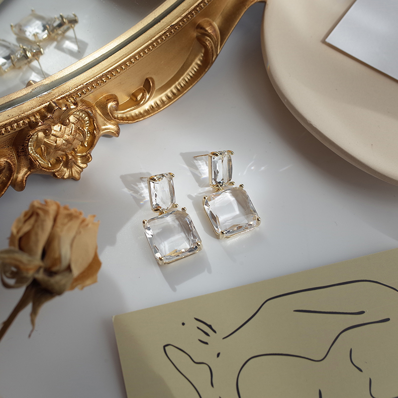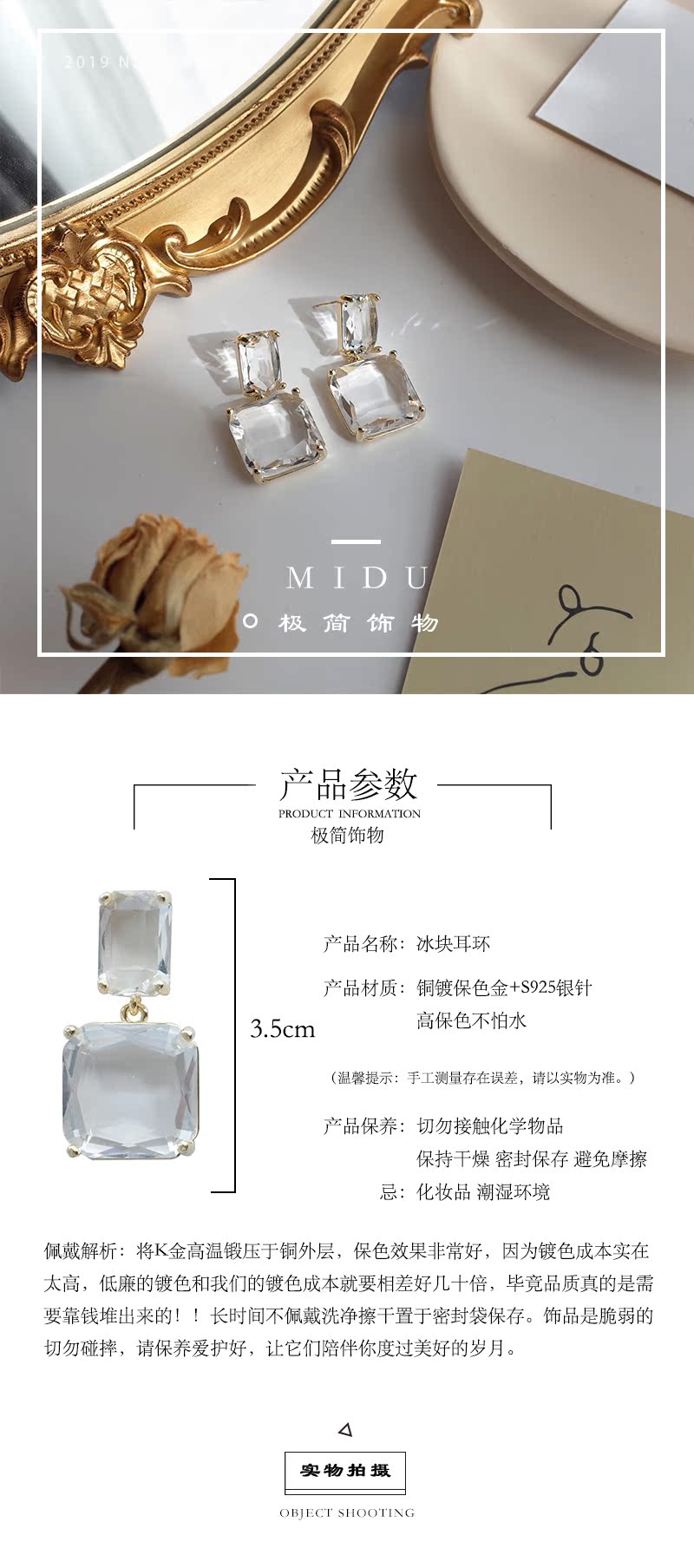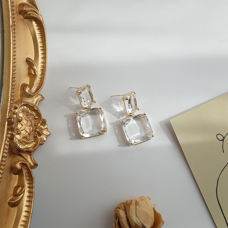 【迷度】S925銀針晶瑩剔透水晶耳釘超閃復古夸張耳墜簡約冷淡風1入