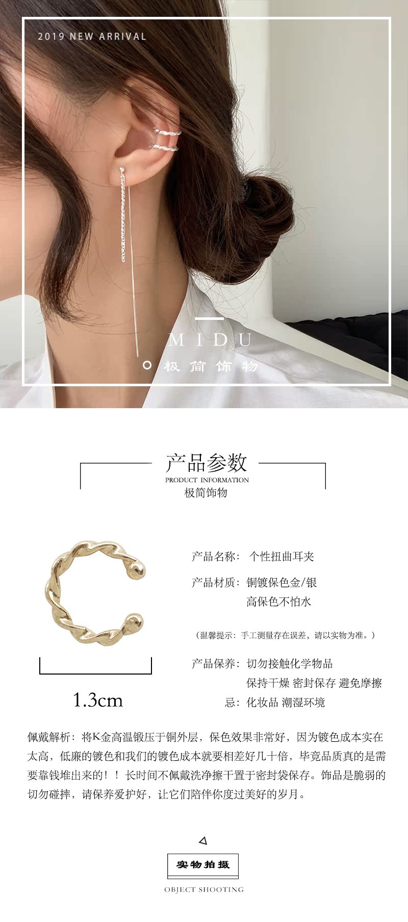 【迷度】韓國小巧百搭扭曲麻花耳夾無耳洞耳骨夾 耳夾女復古港味1入