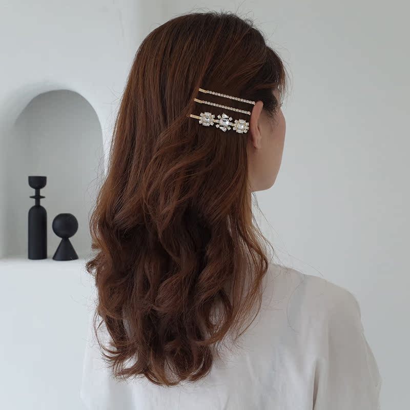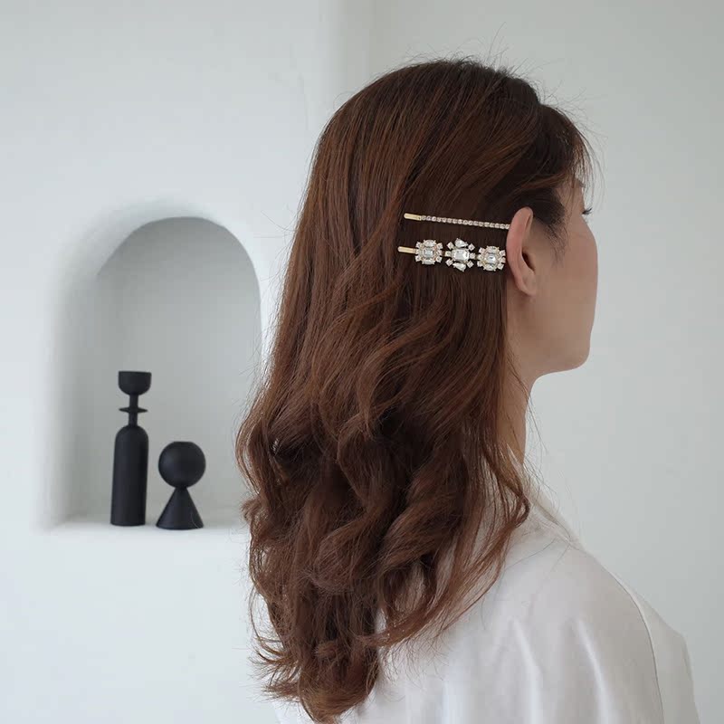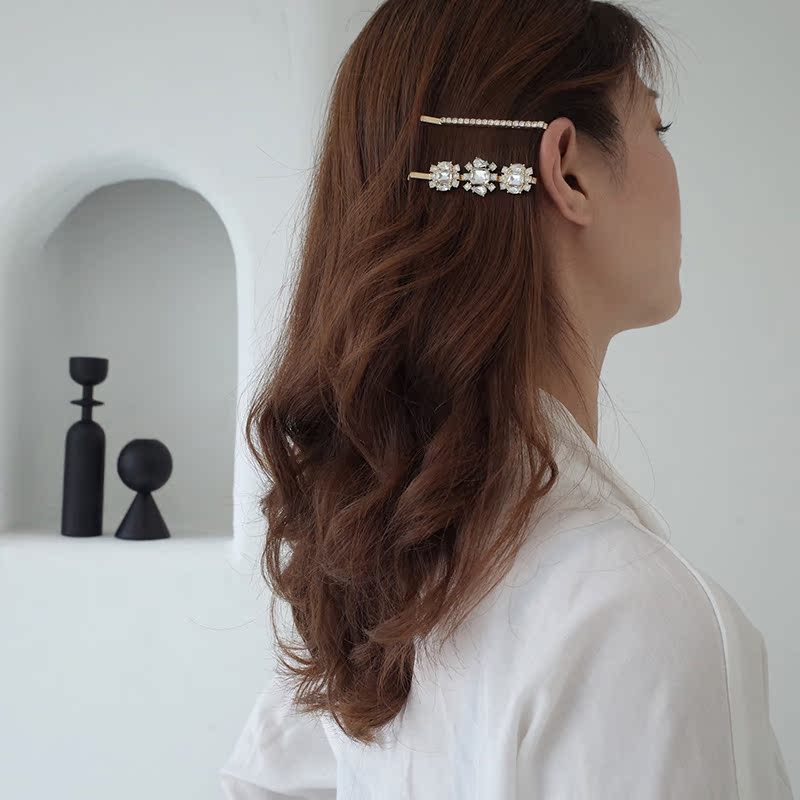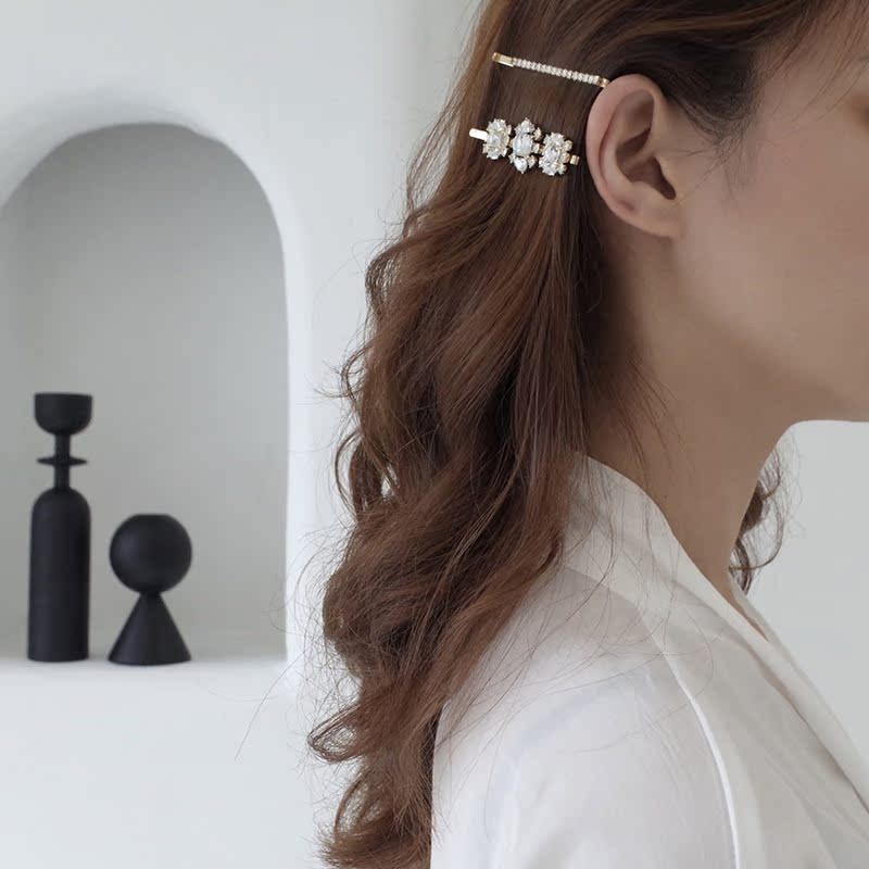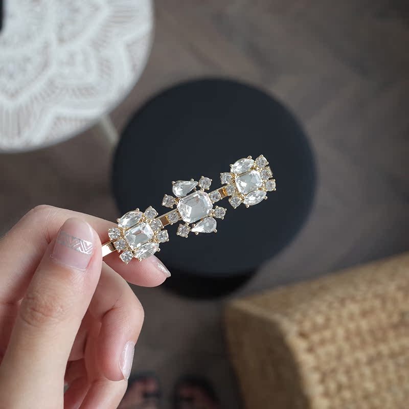 【迷度】法式復古blingbling大鋯石一字夾 發夾 邊夾少女可愛公主1入