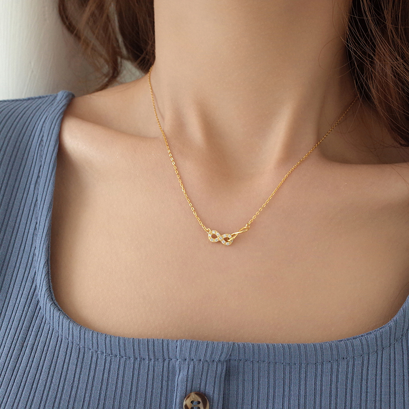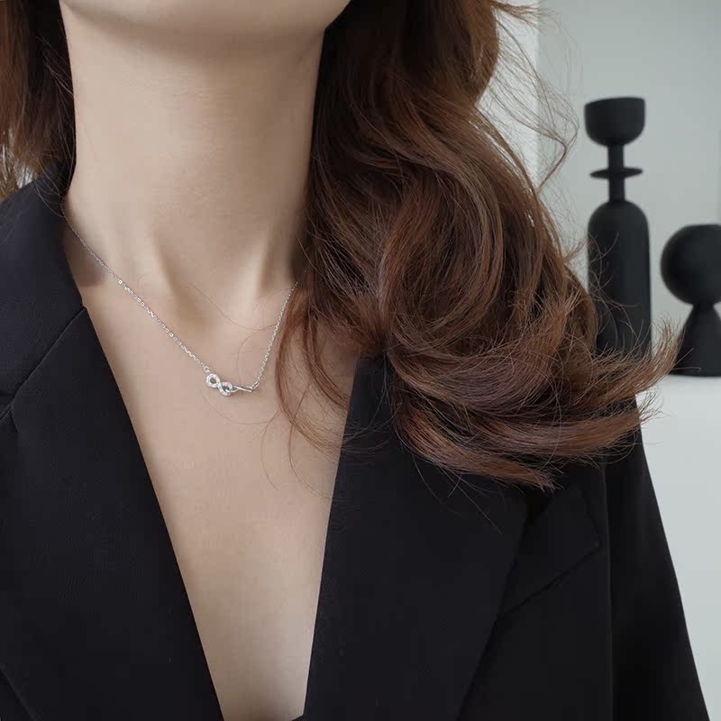 【迷度】通體925純銀鋯石纏繞一生項鏈氣質鎖骨鏈 項鏈女潮 網紅1入