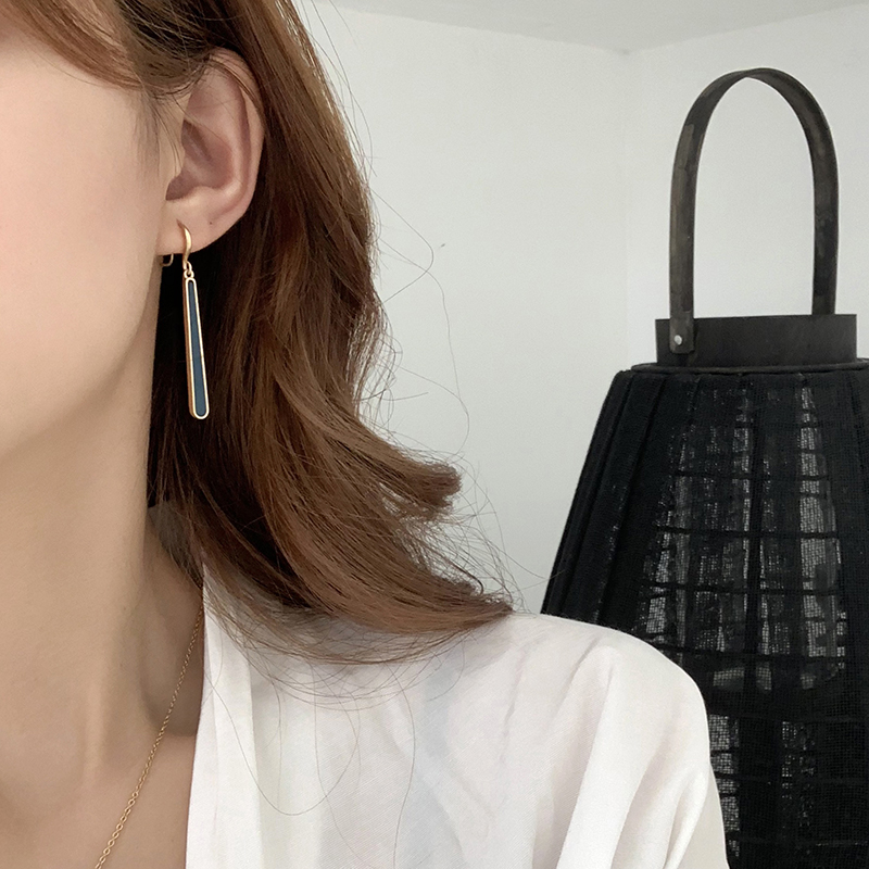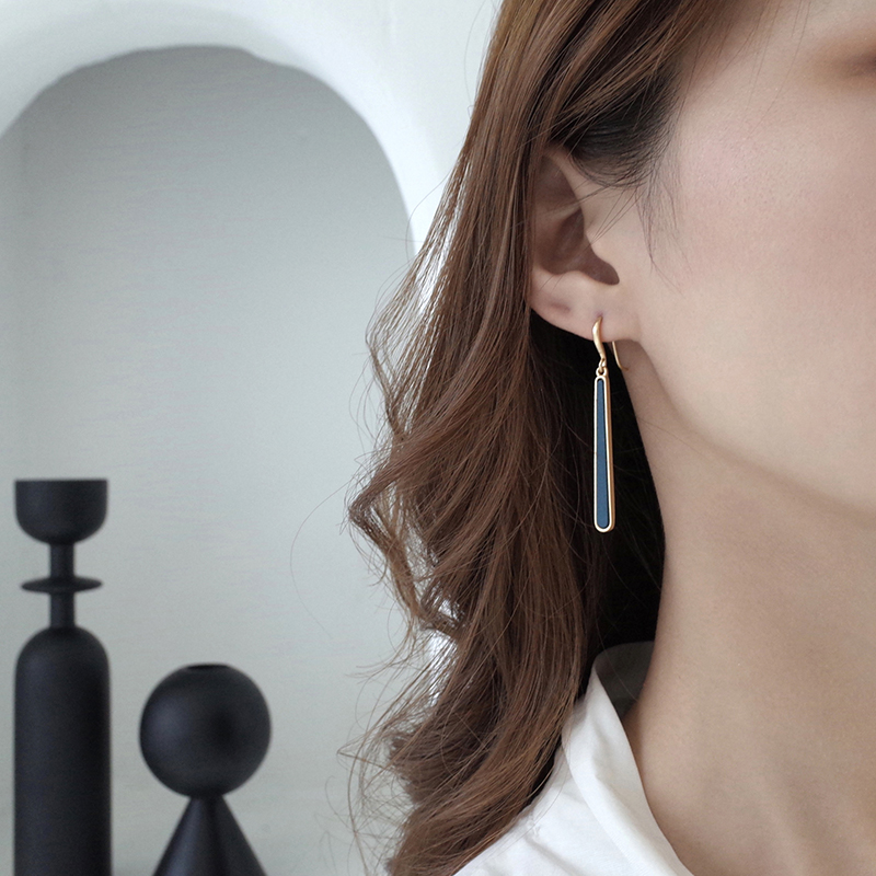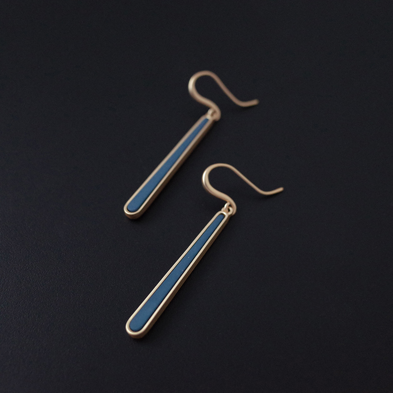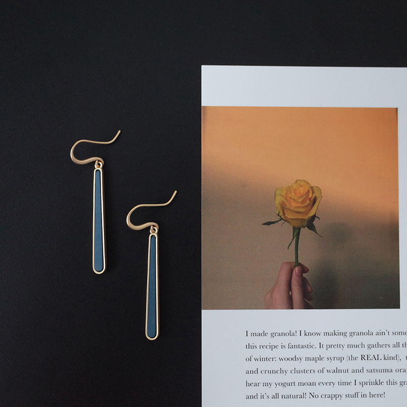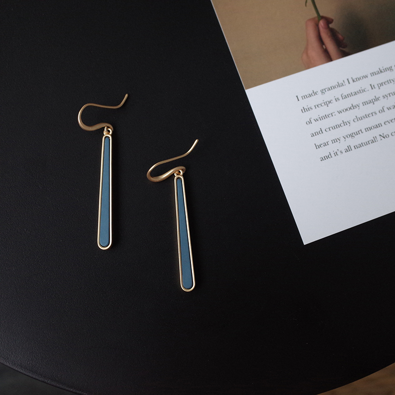 【迷度】霧面復古金色豎條一字耳環會動的耳釘 超仙 精致耳墜女1入