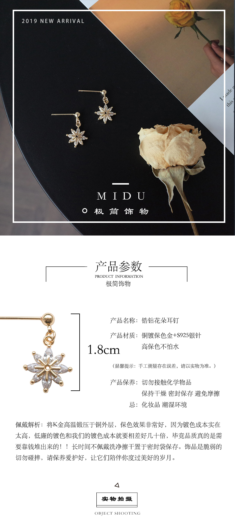 【迷度】S925銀針小巧鋯石清新耳環女耳釘耳夾無耳洞女 新款簡約1入