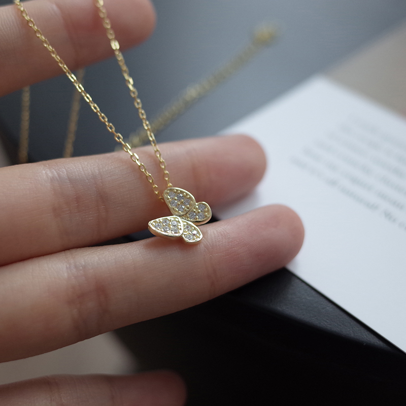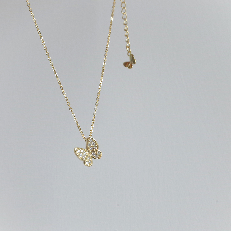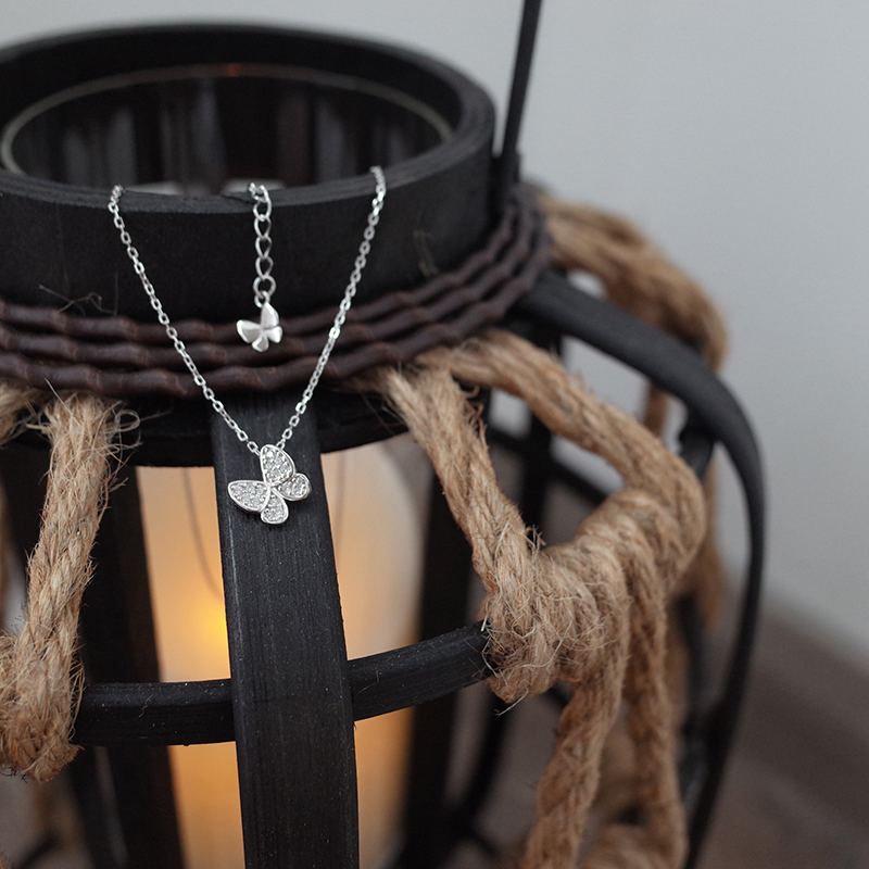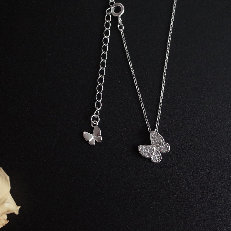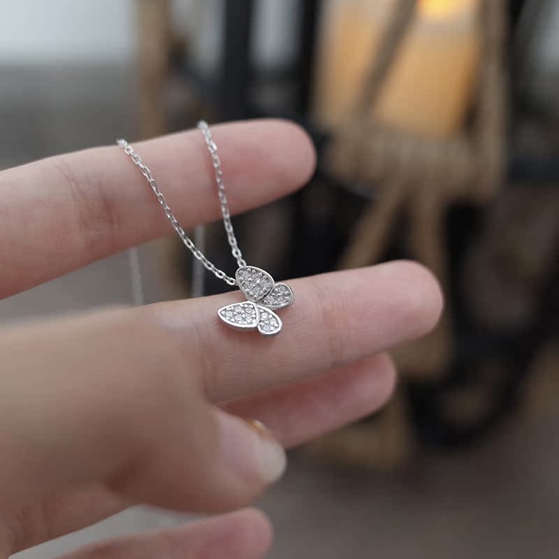 【迷度】通體925純銀閃亮鋯鉆蝴蝶鎖骨鏈 超仙氣項鏈 女 簡約氣質1入