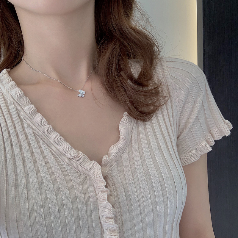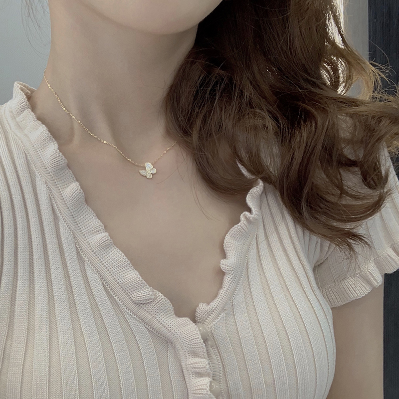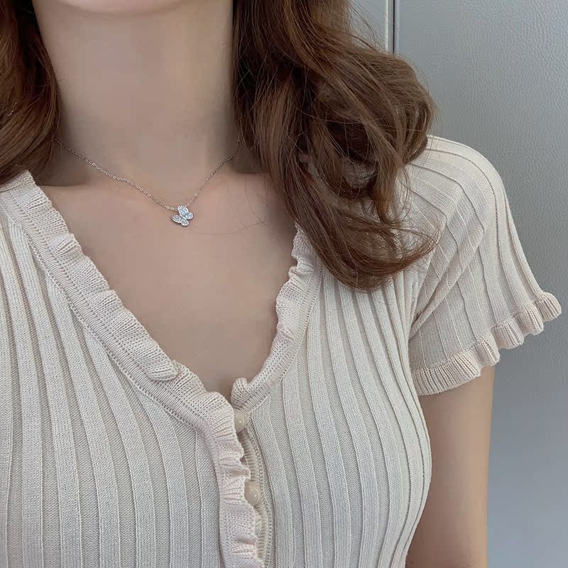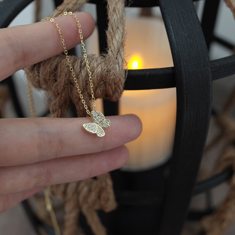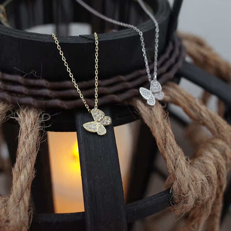 【迷度】通體925純銀閃亮鋯鉆蝴蝶鎖骨鏈 超仙氣項鏈 女 簡約氣質1入